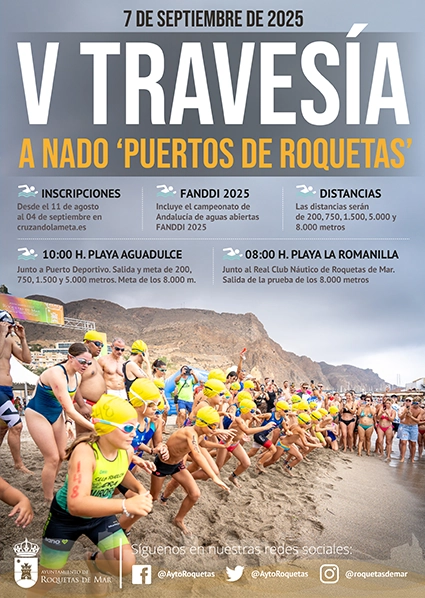 Roquetas de Mar es el municipio de los eventos deportivos por excelencia. Desde los clásicos hasta los más novedosos, pasando por travesías a nado y la media maratón, que tienen su máximo esplendor en las 100 Horas de Deporte durante el mes de agosto. La ciudad dispone de una oferta extensa e interesante en la que tienen cabida todos los públicos, una programación en la que la diversión y el entretenimiento están asegurados.