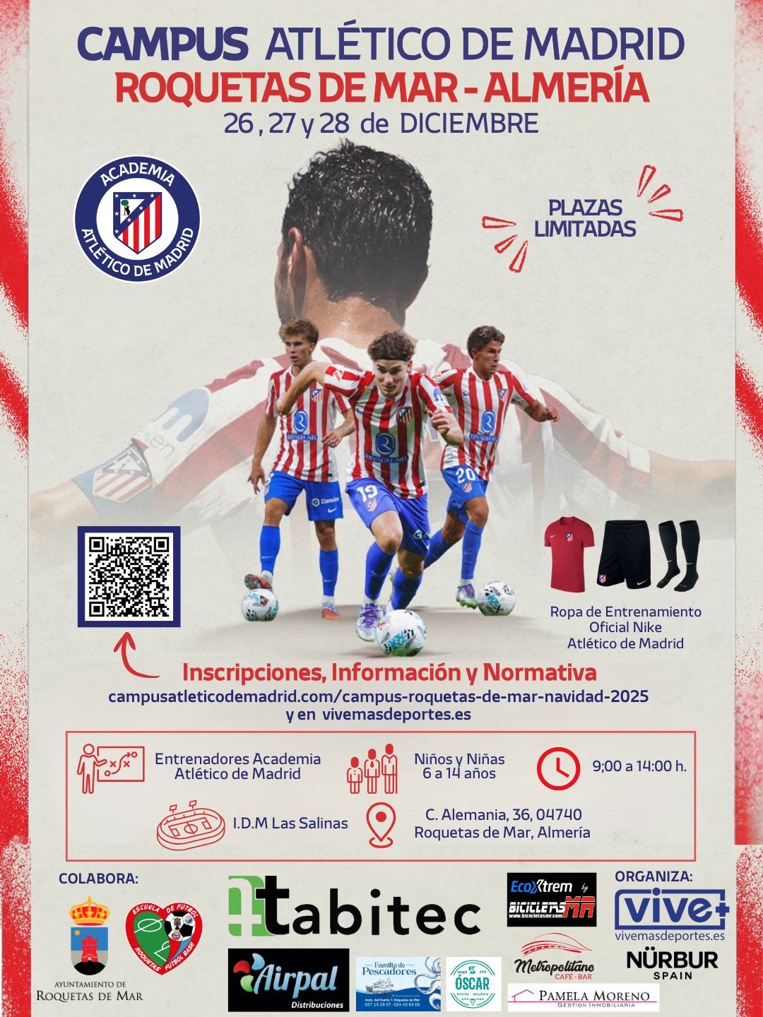 Roquetas de Mar acogerá en Navidad el Campus del Ateltico de Madrid en las IDM de Las Salinas