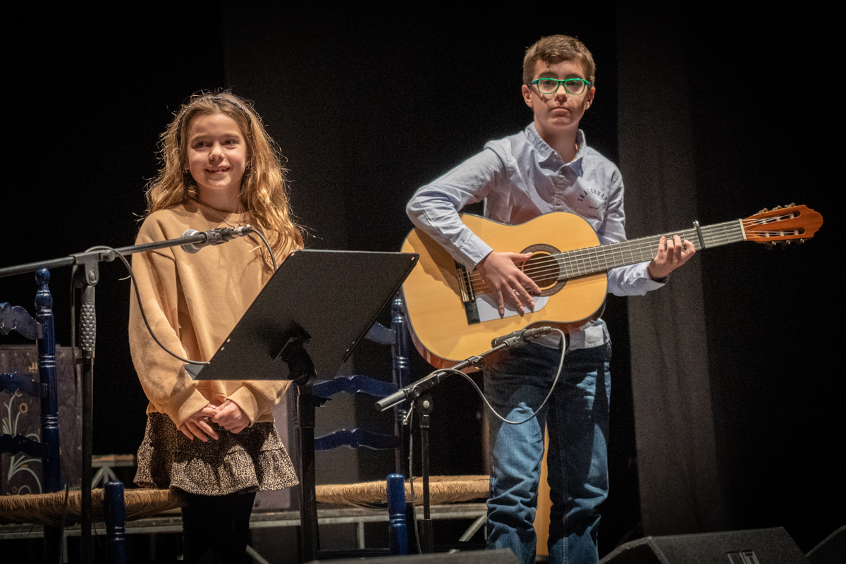 Los alumnos del taller de guitarra y cajón flamenco, acompañados por sus profesores Juan David Lázaro y Juan Antonio Fernández interpretaron ‘Noches de bohemia’. Espectacular fue Beatriz Vicente con la guitarra de Marcial Sánchez que recitó ‘Canto a Andalucía’.