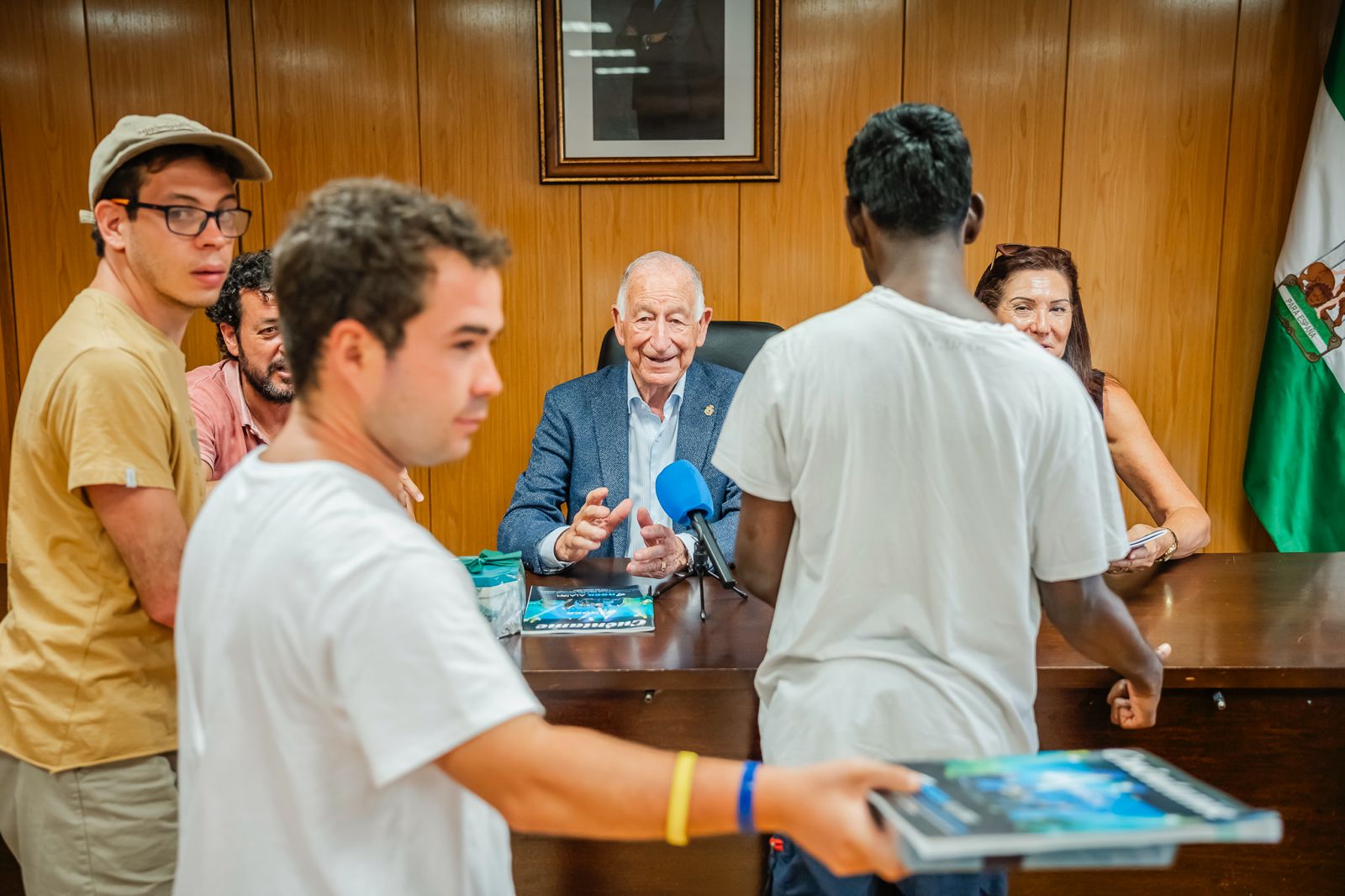 Entre las actividades lúdicas y de ocio que han llevado a cabo esta semana, los alumnos acompañados por sus profesores se han desplazado hasta el Ayuntamiento para saludar al alcalde de la ciudad, Gabriel Amat, quien les ha deseado una feliz estancia.
