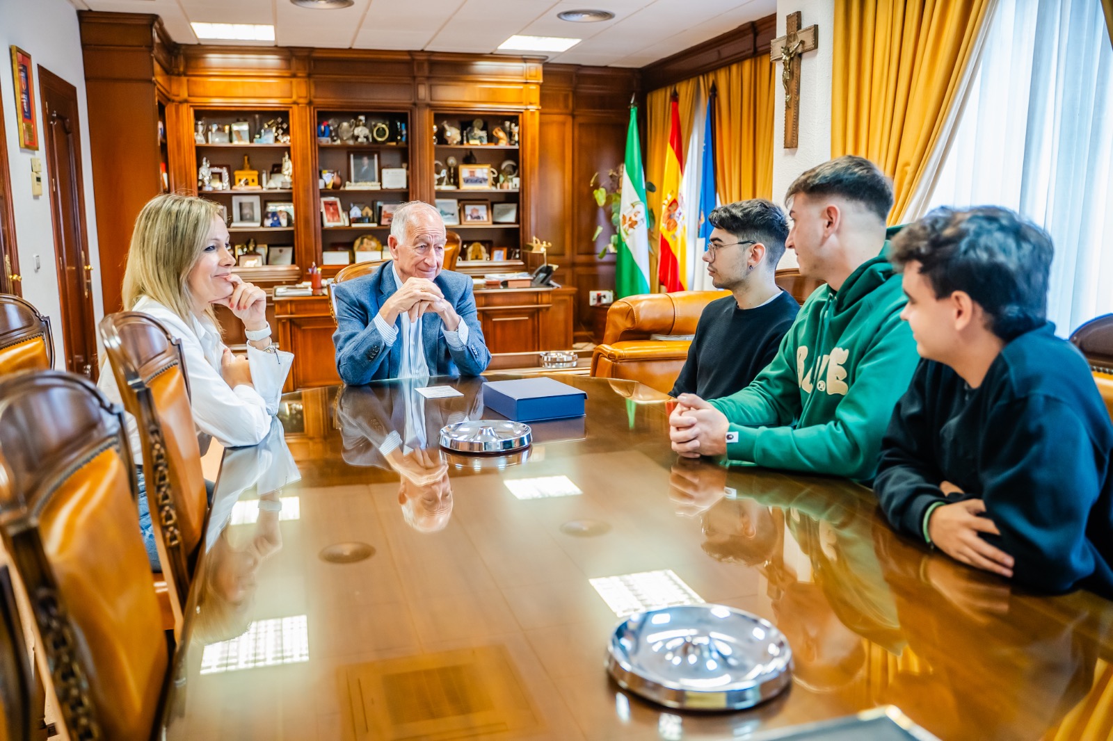 El alcalde de Roquetas de Mar, Gabriel Amat, ha recibido a los jóvenes oradores almerienses, Bogdan Vlad Lata, Jesús Gómez Fernández y Pablo García Vel a quienes ha felicitado por los éxitos obtenidos en las distintas competiciones en las que han participado en los últimos meses.
