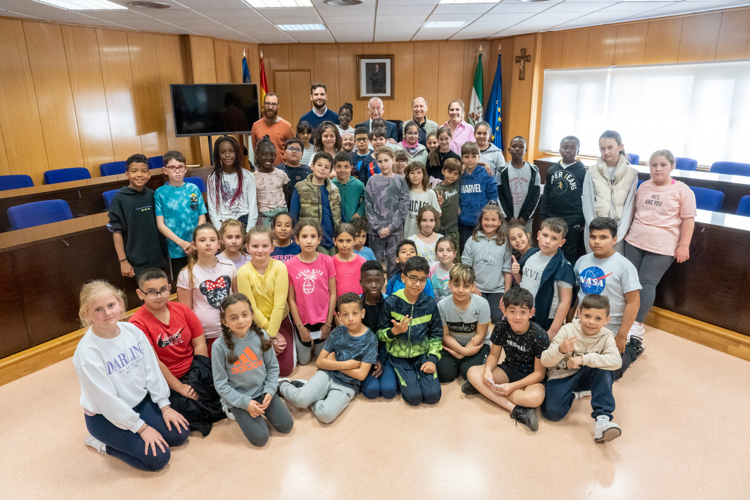 El Ayuntamiento de Roquetas de Mar ha recibido a dos grupos de estudiantes de primaria del CEIP Las Lomas con la finalidad de conocer la institución y el funcionamiento de la misma. Se trata de una actividad enmarcada dentro de la parte práctica de una asignatura cursada por los alumnos.