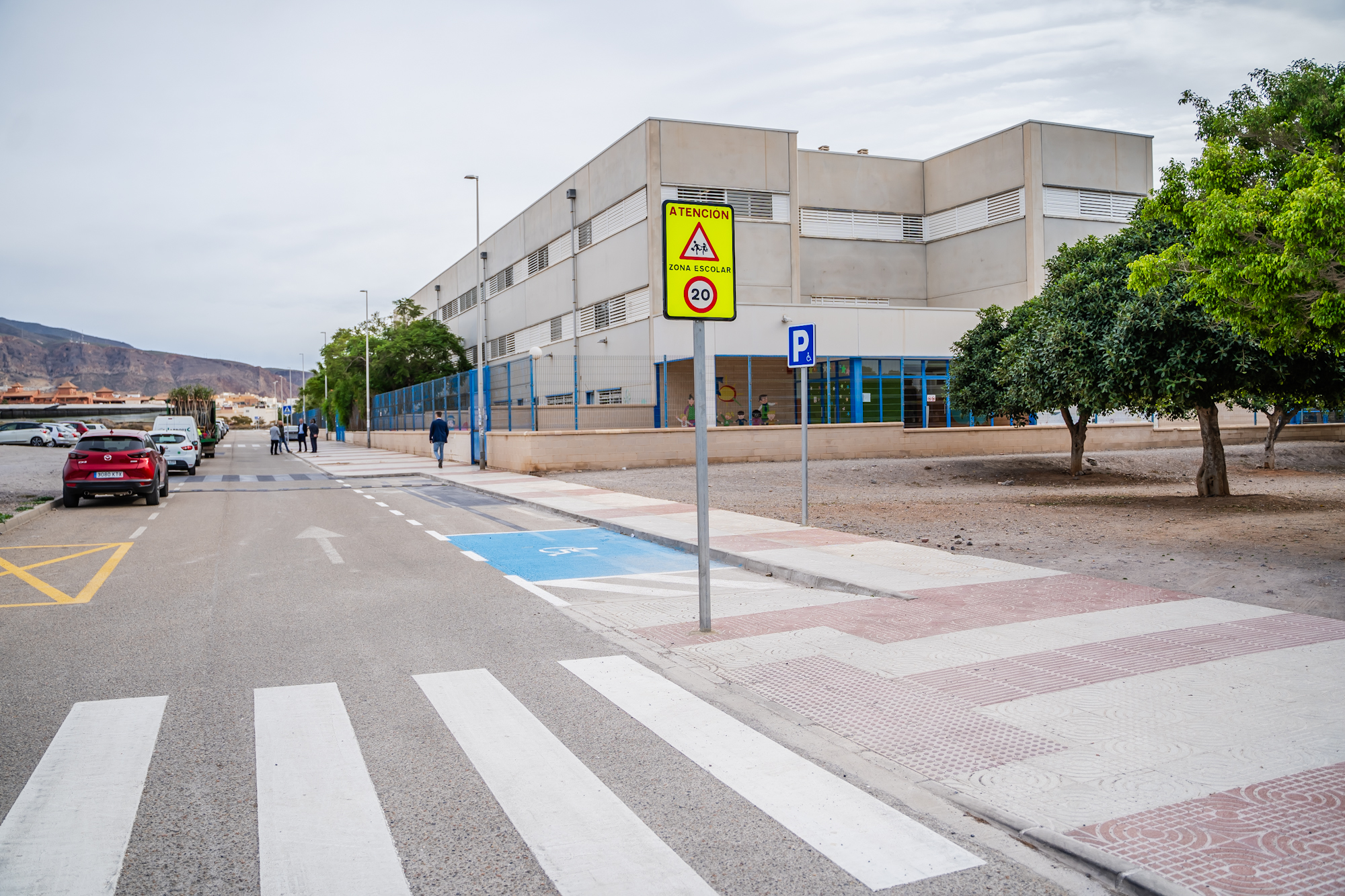 El Ayuntamiento de Roquetas de Mar, a través del área de Movilidad y Tráfico, continúa llevando a cabo las obras de la primera fase del proyecto “Ciudad Peatonal Caminos Escolares.