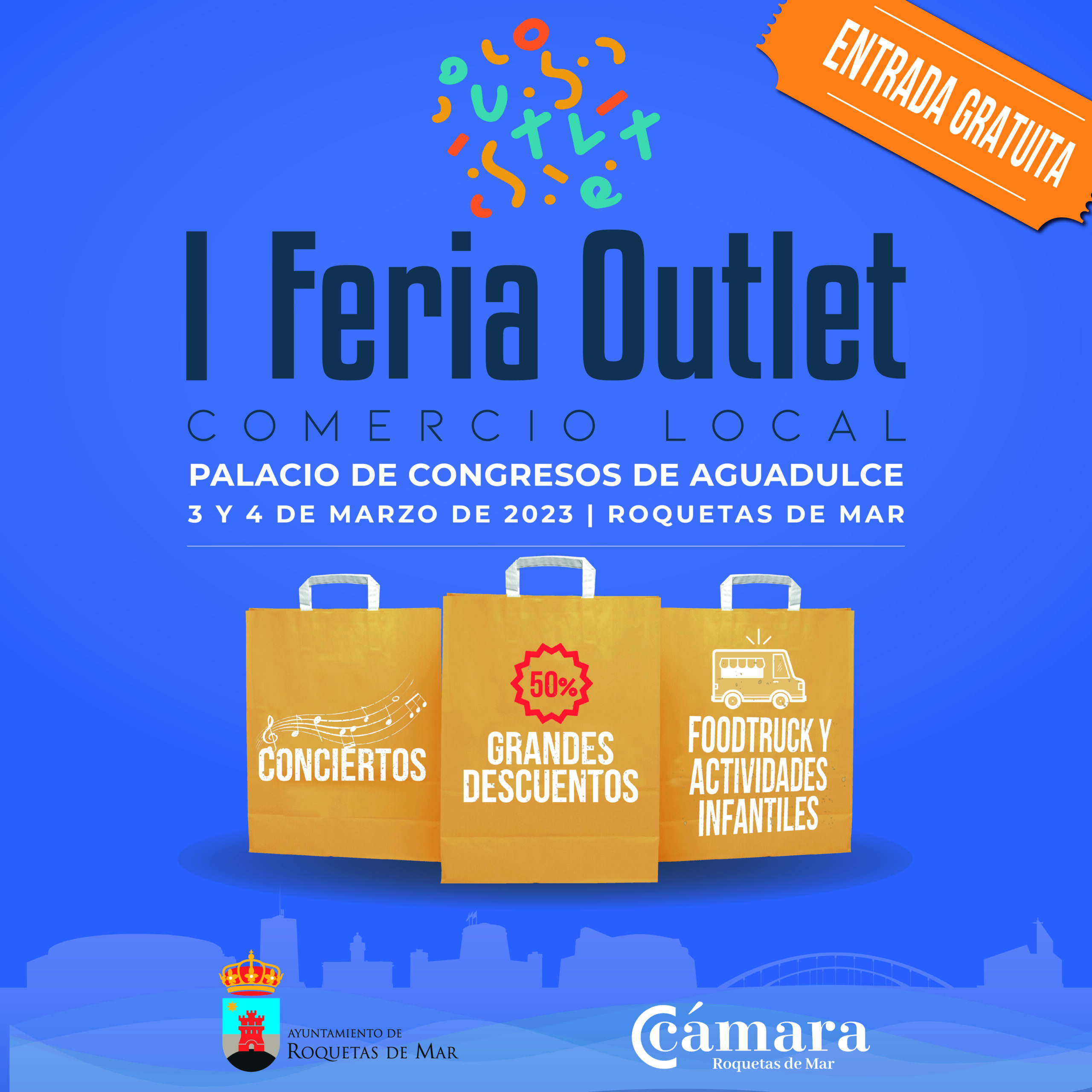 https://www.youtube.com/watch?v=Nk7X9WTFH1k&ab_channel=AyuntamientodeRoquetasdeMarEl Ayuntamiento de Roquetas de Mar presenta la I Feria Outlet del Comercio Local de Roquetas de Mar. Una iniciativa desarrollada desde el área de Comercio del Ayuntamiento de Roquetas de Mar en colaboración con la Cámara de Comercio de Almería y que se celebra los próximos 3 y 4 de marzo en el Palacio de Congresos de Aguadulce.