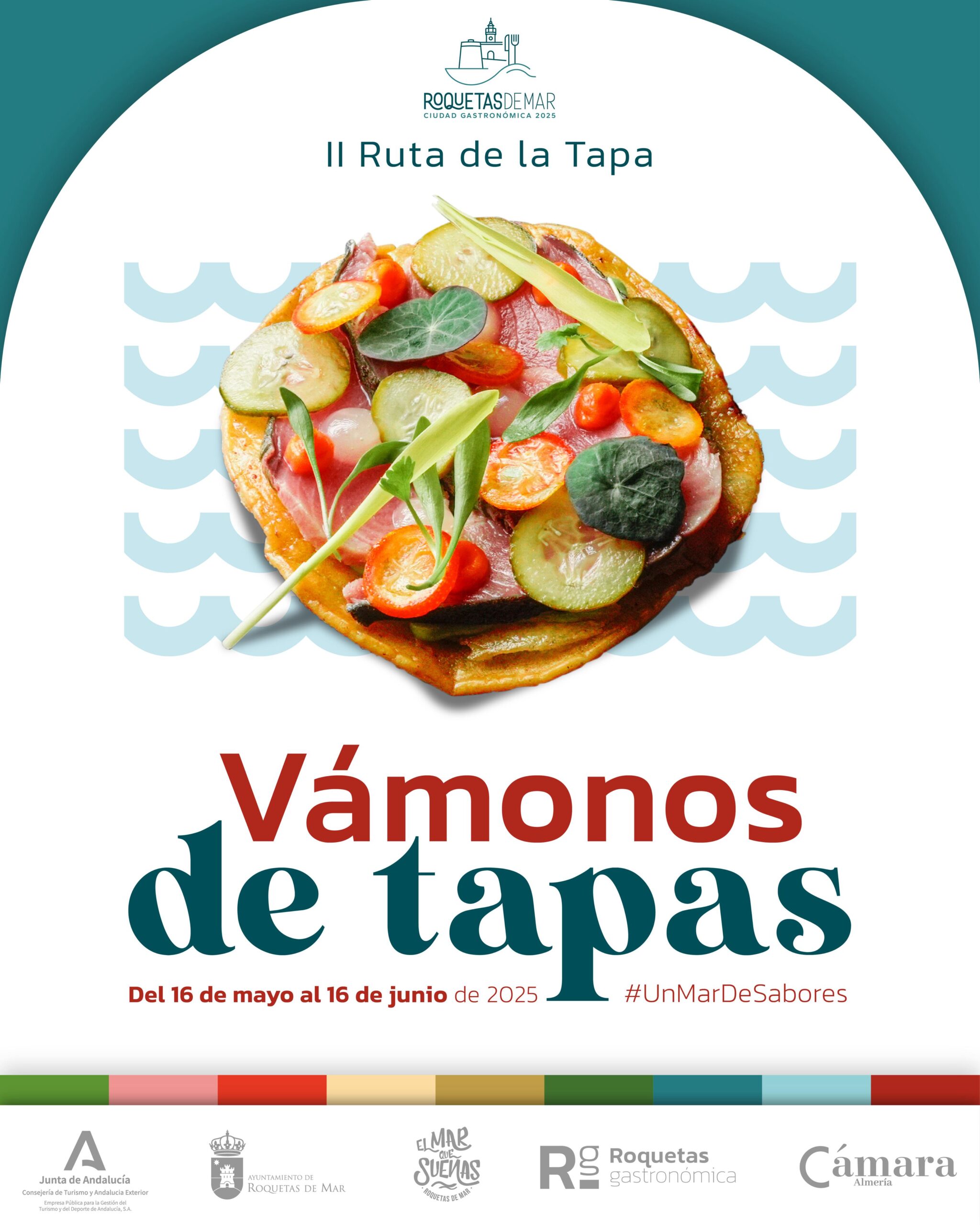 El Ayuntamiento de Roquetas de Mar, a través del área de Turismo y Playas, ha presentado la II edición de la Ruta de la Tapa bajo el lema “Vámonos de Tapas”. Se trata de una iniciativa que cuenta con el patrocinio de la Consejería de Turismo y Andalucía Exterior de la Junta de Andalucía y la colaboración de la Cámara de Comercio y que está enmarcada dentro de la programación que se ha organizado con motivo de la denominación de Roquetas de Mar como Ciudad Gastronómica 2025.