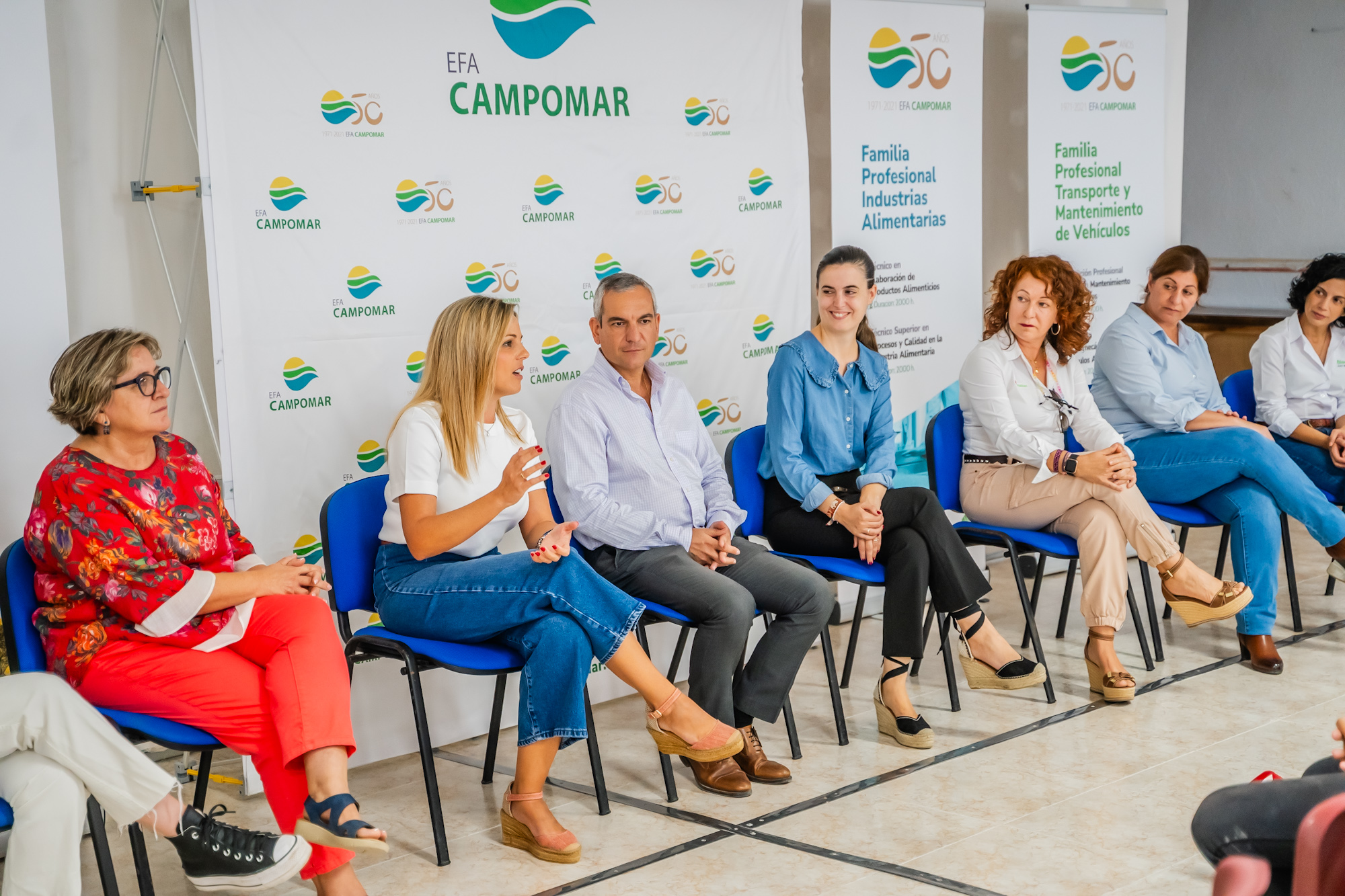 La concejal de Agricultura, Rocío Sánchez, junto con el director de EFA Campomar, José María Molina Ruiz y al concejal de Servicios Sociales, Loles Moreno, ha inaugurado este encuentro en el que han participado seis mujeres vinculadas al sector agrícola del municipio en distintos ámbitos como María Garrido Carrillo, Ingeniera técnica agrícola y profesora de EFA Campomar, Yolanda Muñoz Aragón, técnica de la empresa Bioera y antigua alumna de EFA Campomar, María Martín Navarro, licenciada en Química y profesora de EFA Campomar, Jimena Romero Fuentes, alumna de FP Básica, Actividades Agropecuarias en EFA Campomar, Raquel Delgado Pérez, técnica de la empresa ZOI y antigua alumna de EFA Campomar y Soraya Fernández, ingeniera en Hortala y miembro del grupo Reinas del Campo.
