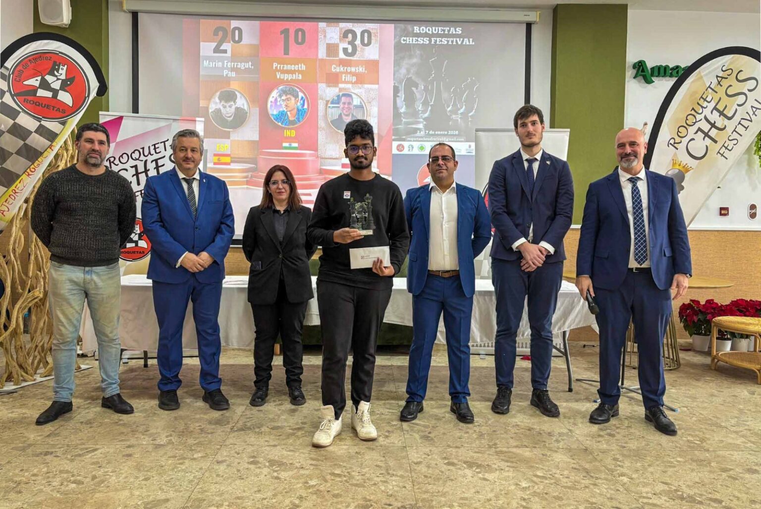 Roquetas de Mar ha vuelto a demostrar su capacidad organizativa y su relevancia en el calendario deportivo mundial con la clausura del XXXVII Roquetas Chess Festival. El Hotel Bahía Serena ha sido escenario, del 2 al 7 de enero, de un torneo de altísimo nivel que ha culminado con la victoria del ajedrecista indio Prraneeth Vuppala en el Open Internacional.