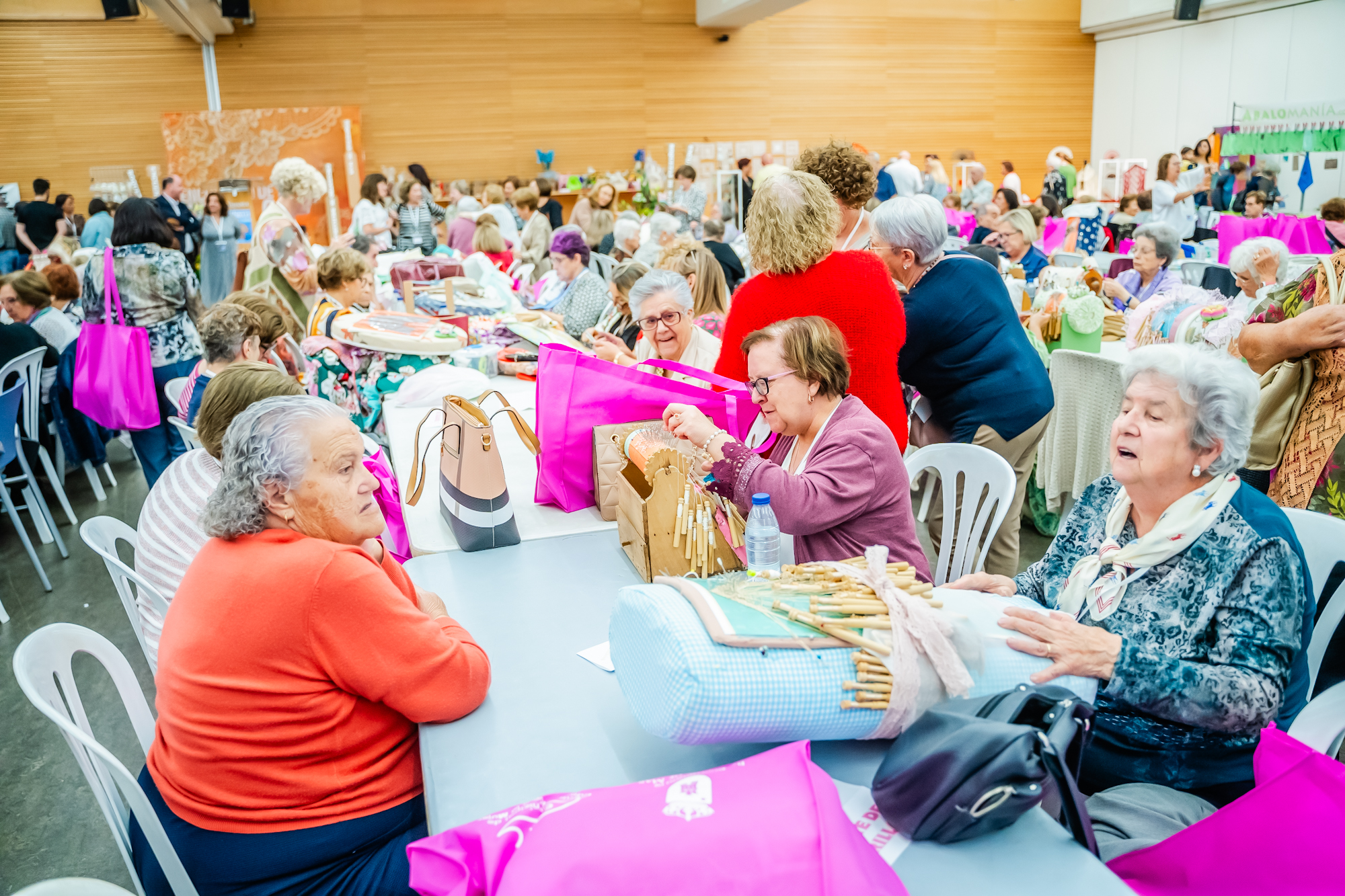 El Palacio de Congresos y Exposiciones de Aguadulce ha sido escenario de una de las actividades más singulares que el Ayuntamiento de Roquetas de Mar, a través del área de Mujer, Mayores y Participación Ciudadana, pone en marcha cada año en colaboración con la Asociación de Encajeras de Bolillo de Roquetas de Mar.