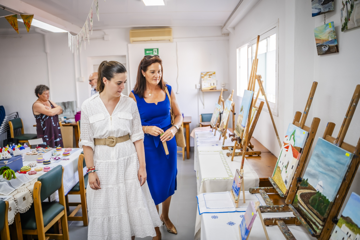 Las concejalas de Servicios Sociales y Mayores del Ayuntamiento de Roquetas de Mar, Loles Moreno y M.ª Ángeles Alcoba, respectivamente, han acudido a visitar la exposición en el Centro de Participación Activa de Roquetas de Mar de más de 30 ‘Acrílicos’ de Juanjo Ruiz Plaza y los ‘Caprichos manuales’ de M.ª Carmen Martín.