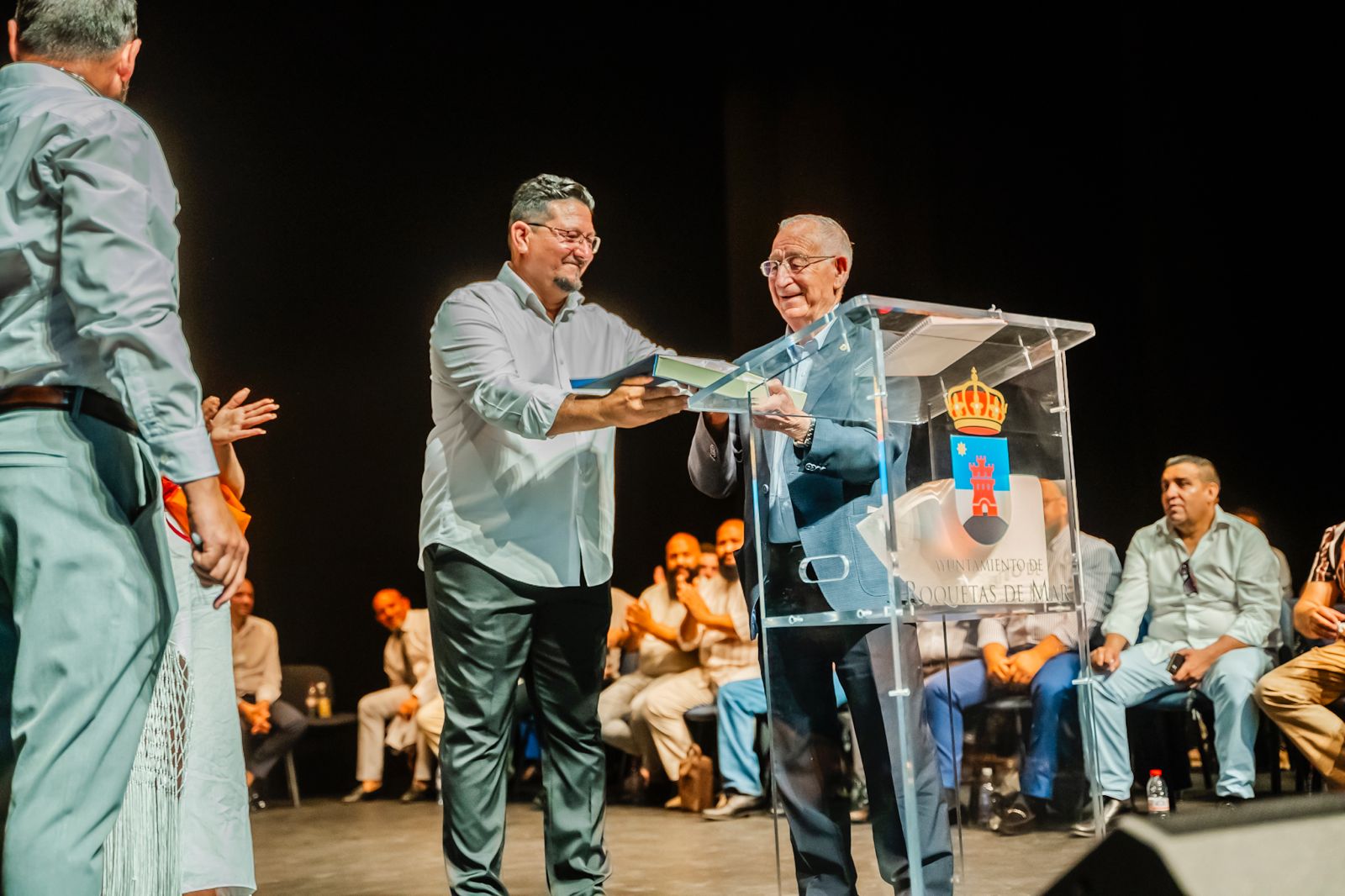 El alcalde de Roquetas de Mar, Gabriel Amat, acompañado por parte del equipo de Gobierno, asistió a esta actuación en la que les felicitó por su trayectoria y toda la labor social que llevan a cabo a través de diferentes actividades por todo el municipio y la provincia. Por su parte, los organizadores entregaron al primer edil una placa en agradecimiento por la colaboración que el consistorio siempre muestra en sus iniciativas.