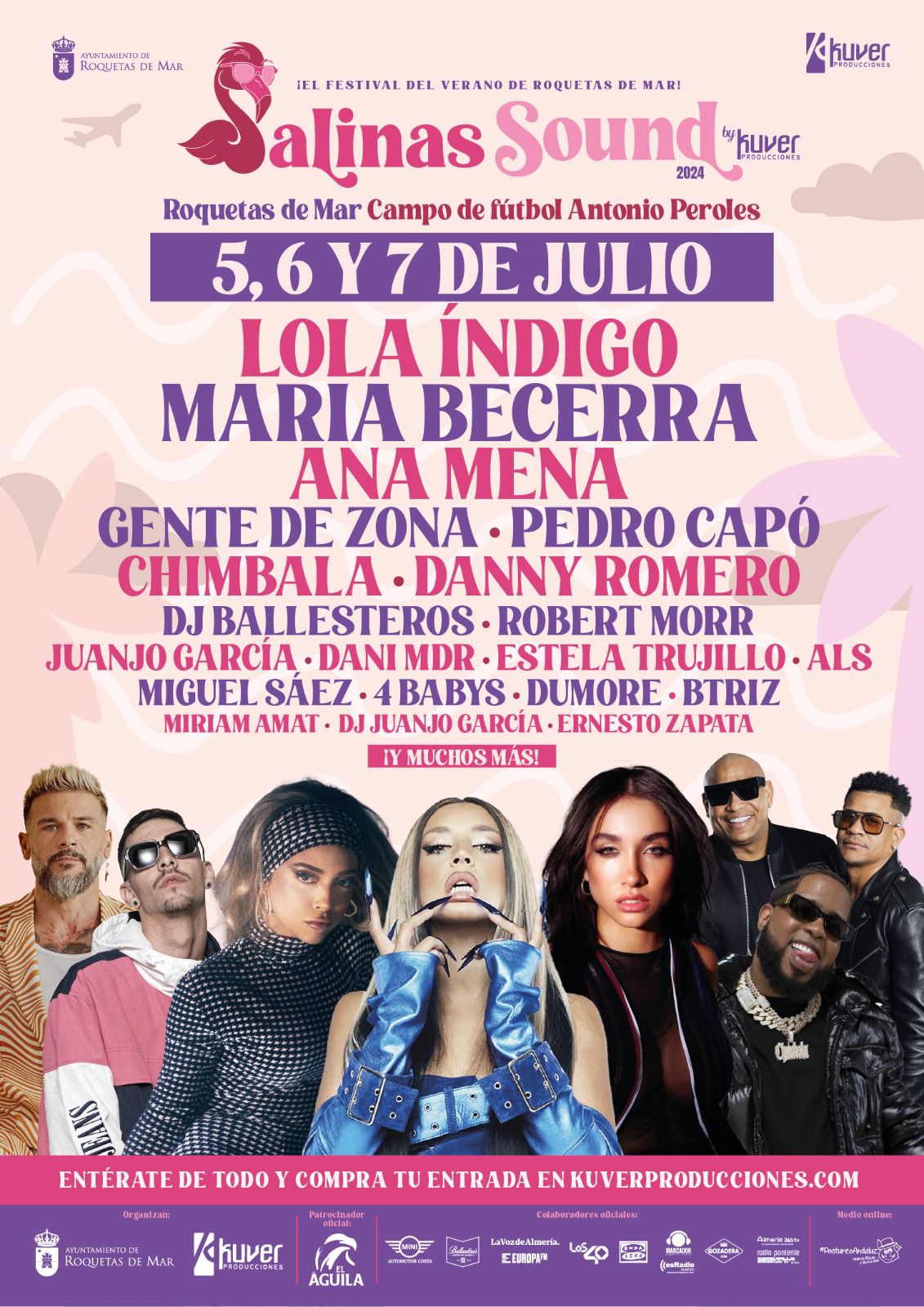 La cantante Lola Índigo también estará en el Festival Salinas Sound que se celebra los días 5, 6 y 7 de julio en Roquetas de Mar. Se trata de un festival para todas las edades que se realizará en el Estadio Municipal Antonio Peroles. Está organizado por el Ayuntamiento de Roquetas de Mar y Kuver Producciones.