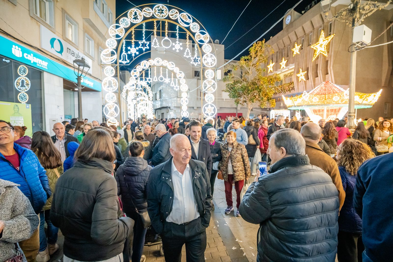 El Ayuntamiento de Roquetas de Mar inauguró anoche la Navidad con el tradicional encendido en la Plaza de la Constitución. Cientos de vecinos se acercaron para vivir el inicio oficial de las fiestas en un ambiente marcado por la música y la iluminación navideña que ya viste el municipio. El acto comenzó a las ocho de la tarde, momento en el que el alcalde, Gabriel Amat, acompañado por concejales del equipo de Gobierno, activó el sistema de alumbrado navideño. “Queremos que Roquetas de Mar se viva con ilusión y alegría, y que cada familia encuentre espacios para compartir y disfrutar estas fechas”, señaló el alcalde.