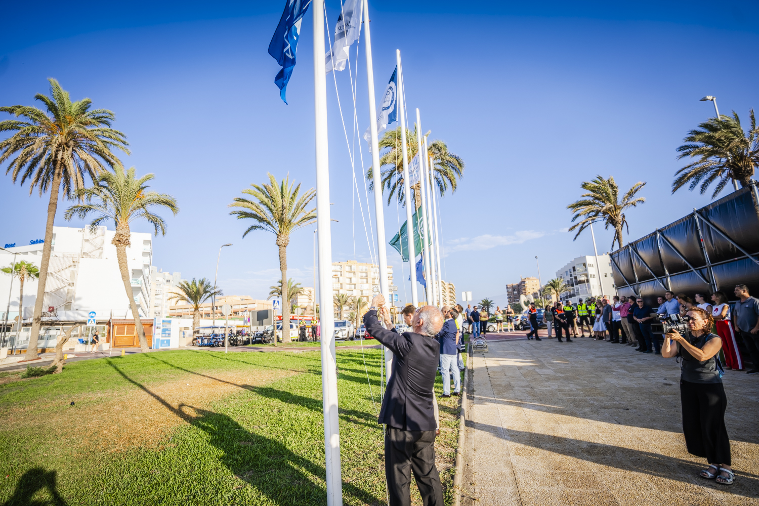 El alcalde de Roquetas de Mar, Gabriel Amat, que ha estado acompañado de buena parte del equipo de Gobierno, operarios de playas y agentes de Policía Local, ha asegurado que “es una satisfacción conseguir todas estas banderas y tener todas las playas con reconocimientos por su magnífica calidad. Diariamente el Ayuntamiento hace un esfuerzo para que estén perfectas y al servicio de la gente”. Ha explicado que es una inmejorable noticia que las playas de Roquetas de Mar sean las segundas más buscadas de España, algo que ha calificado de “importante”. “El trabajo para lograr los reconocimientos de todas nuestras playas desde Aguadulce a Playa Serena no ha sido fácil y quiero agradecerselo a todos los que lo hacen posible”, ha dicho. Ha recordado también que las duchas de todo el término municipal están funcionando y que no hay cortes de agua porque se ha hecho un trabajo desde hace años y gracias a la desaladora de Balanegra que se hizo gracias a gobiernos como el de Aznar. “Seguiremos trabajando por la calidad y lograr distintivos que lo certifiquen en nuestro municipio”, ha concluido.