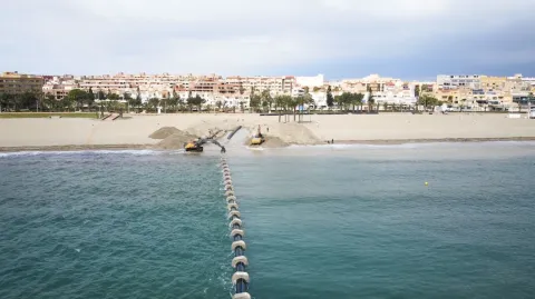Roquetas de Mar coloca en el fondo marino el aliviadero de la balsa de tormentas de Avenida Sudamérica