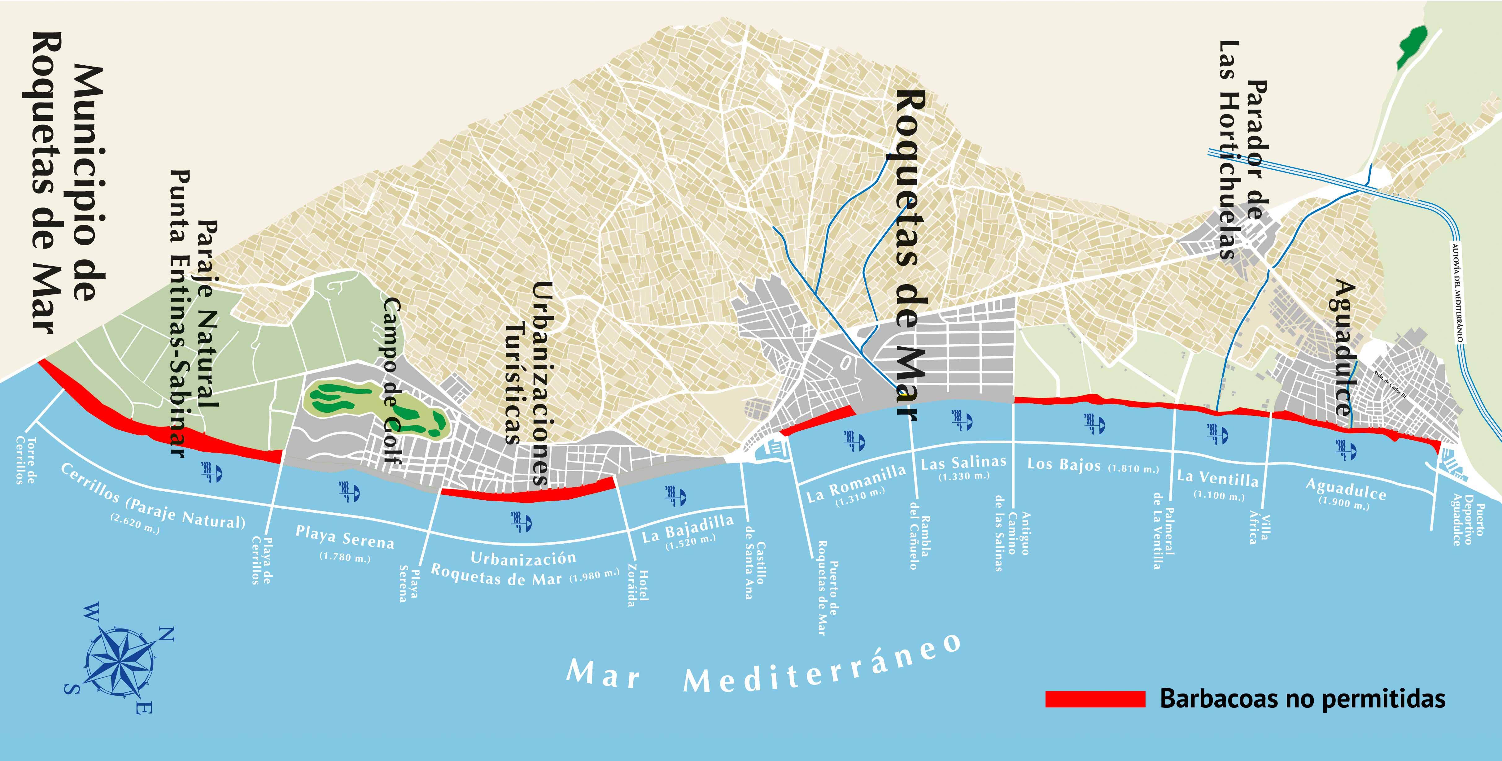 - Queda prohibido encender fuego o usar barbacoas en los siguientes tramos de playa:
