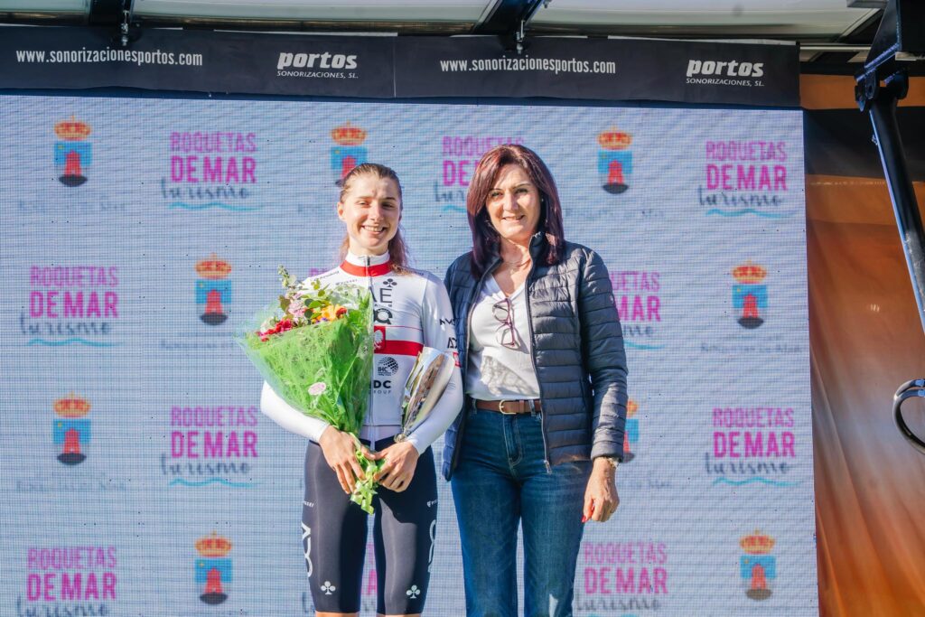 Ya en el tercio final de la prueba, la noruega Stine Dale (Team Coop-Repsol) lanzó un pulso en solitario al grupo de las velocistas, que venía muy roto y sin que ningún equipo pudiese tomar el mando. El Laboral Kutxa terminó, ya en la entrada al circuito urbano de Roquetas, por echarse encima de la ciclista nórdica, que gracias a su ataque consiguió ganar el premio de la Combatividad. Por su parte, Caroline Andersson (Liv-AlUla) se hizo con los sprints intermedios al puntuar en dos de ellos.
