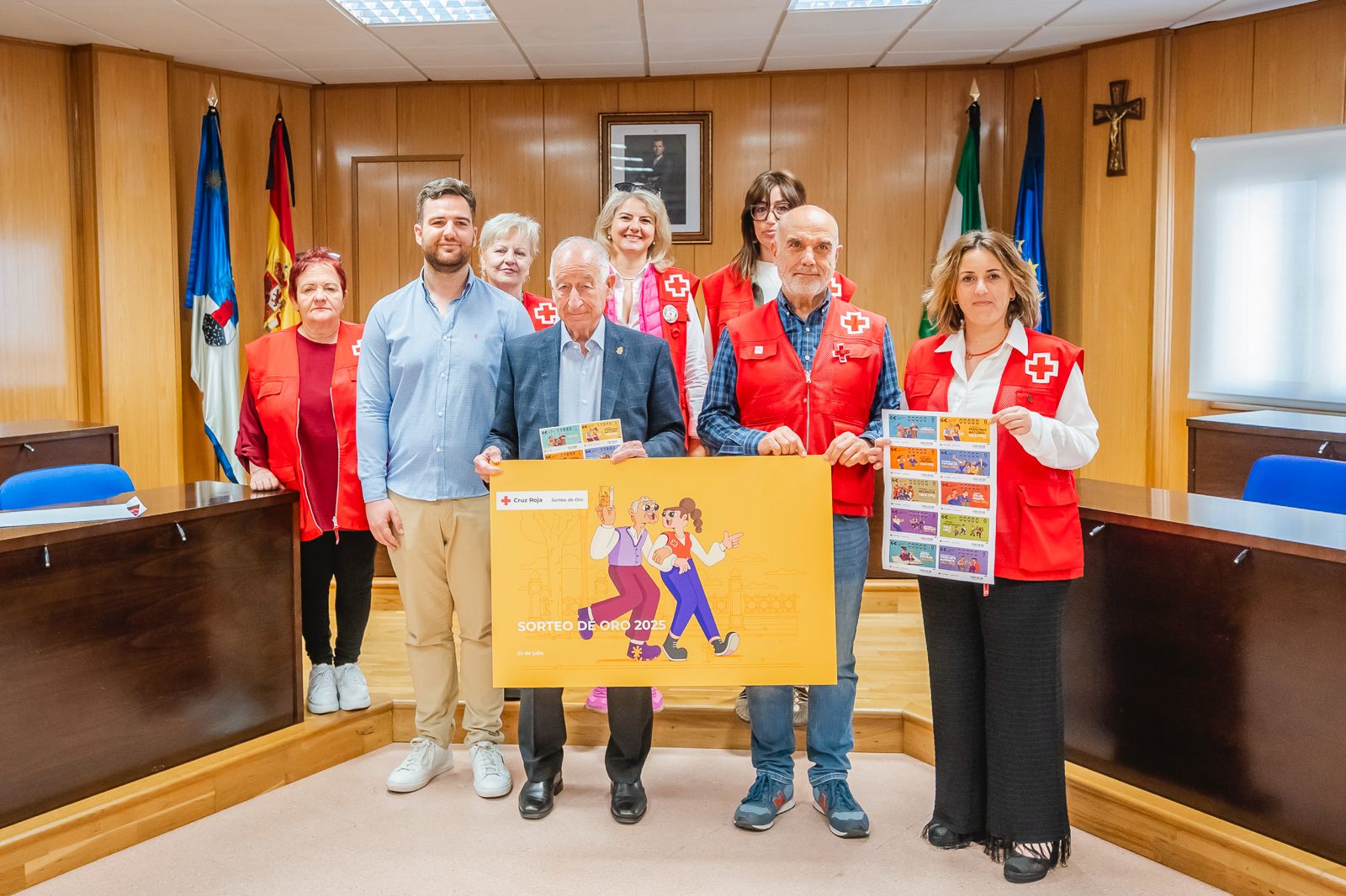 El alcalde de Roquetas de Mar, Gabriel Amat, ha recibido en el salón de plenos a los representantes de la Asamblea Local de Cruz Roja para presentar el “el sorteo extraordinario de lotería que este año tiene por lema “Lo que hacemos por las personas vale oro”.