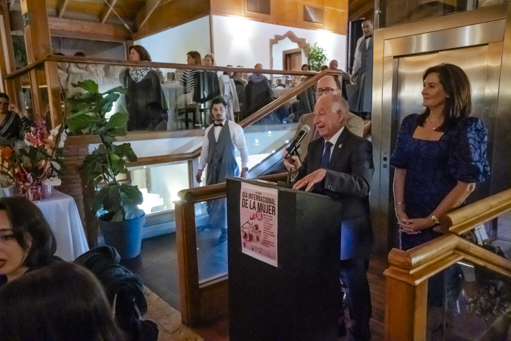 El alcalde de Roquetas de Mar, Gabriel Amat, acompañado por su esposa, María Pintor,    junto con la concejal responsable del área, Mª Ángeles Alcoba y el resto de concejales del equipo de Gobierno han asistido a la cena de gala a la que han asistido alrededor de 450 mujeres del municipio. “Se trata de una noche de convivencia y disfrute en la que queremos reconocer el trabajo y la labor que llevan a cabo las asociaciones de mujeres del municipio, poner en valor el importante papel que han tenido en la transformación, crecimiento y desarrollo de nuestra ciudad”.