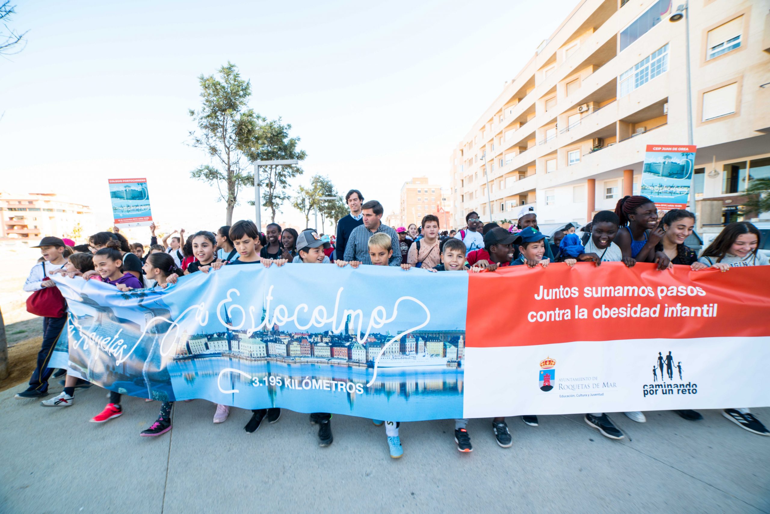 Con motivo del `Día Internacional de prevención de la Obesidad´, un total de 593 alumnos de 11 colegios del municipio han participado en la mañana de hoy en la actividad mundial `Caminando por un reto´. Roquetas de Mar ha conseguido la 34ª posición entre las ciudades participantes de todo el mundo, con 3.195 kilómetros recorridos (cinco kilómetros por niño), lo que equivale a la misma distancia que hay desde Roquetas hasta Estocolmo. El objetivo final del reto sumar una distancia equivalente a la que existe hasta la Luna.