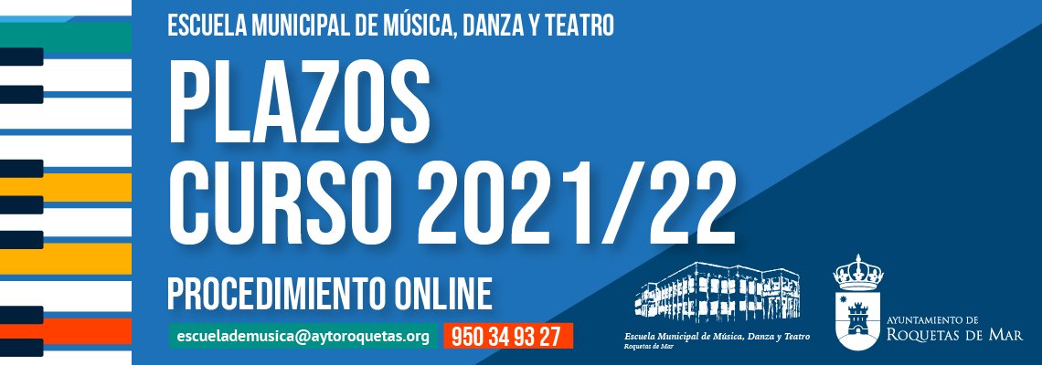 La Escuela Municipal de Música, Danza y Teatro abre los plazos de solicitud de plaza para el curso 2021/2022 a través de un PROCEDIMIENTO ONLINE en las siguientes fechas: