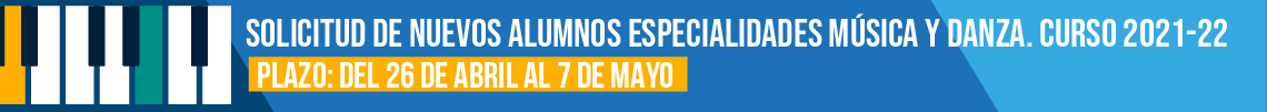 - Solicitud de plaza para nuevos alumnos en las especialidades musicales y en danza: del 12 de abril al 7 de mayo de 2021 (a partir de 8 años)