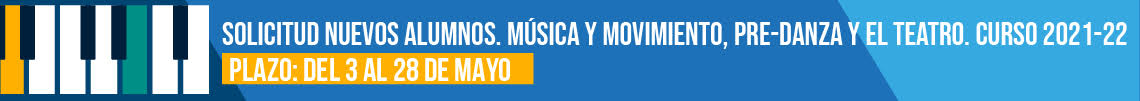 - Solicitud de plaza para nuevos alumnos para Música y Movimiento y Predanza: del 3 de mayo al 28 de mayo de 2021 (entre 4 a 7 años)