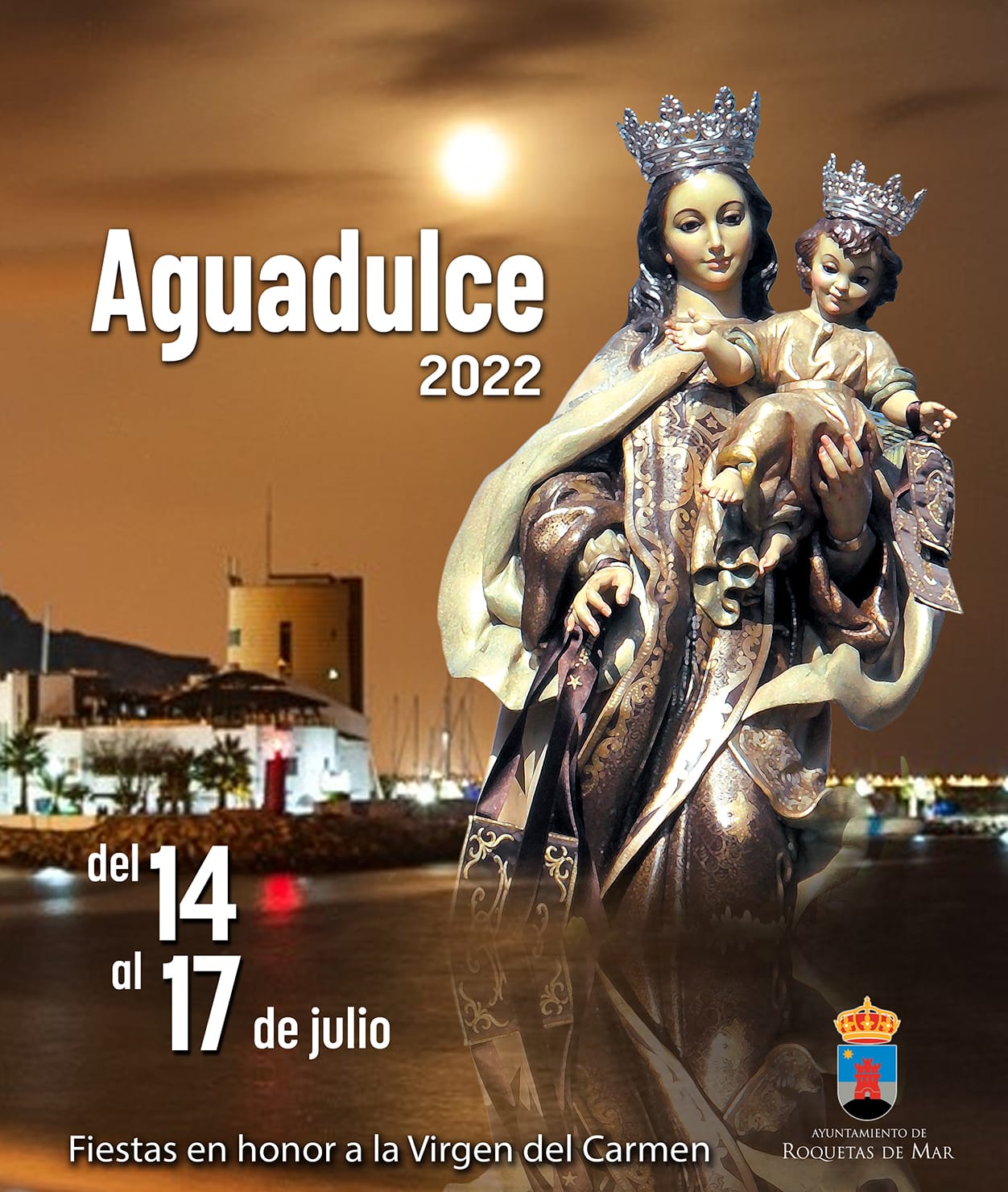 A las seis de la tarde, llegará uno de los momentos más emotivos de estas fiestas con la bajada de la Virgen desde la ermita en romería al Puerto. A las seis y media de la tarde, dará comienzo la procesión marítima desde el Puerto de Aguadulce hasta el Puerto de Roquetas.