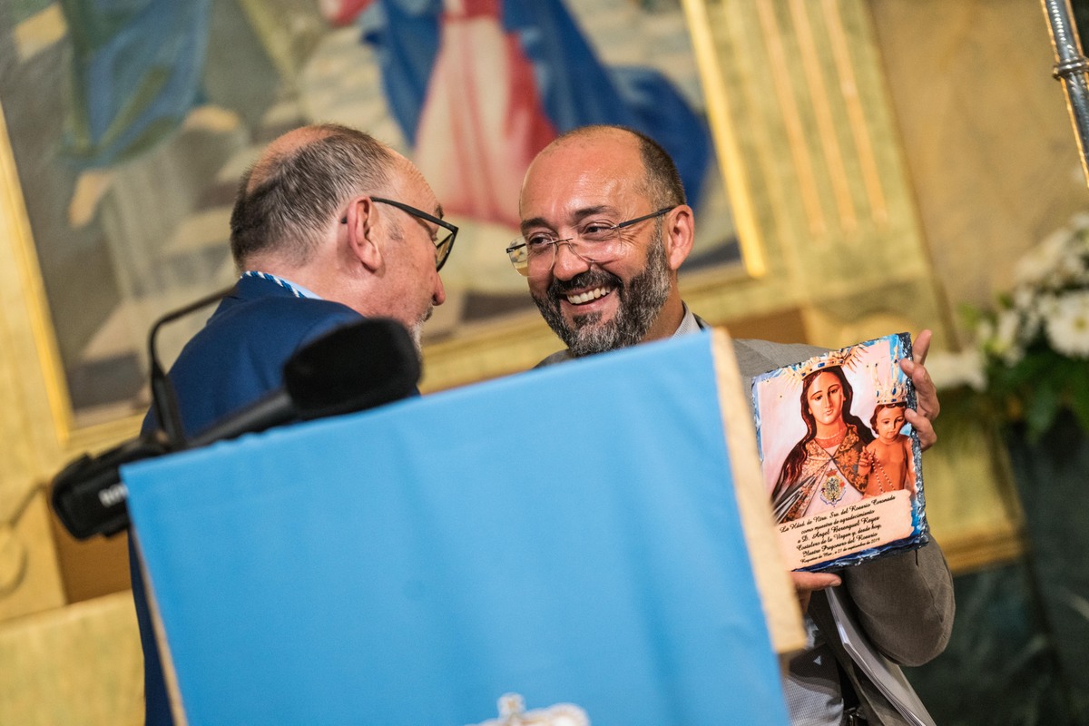 Relató el pregonero, vecino de Roquetas centro y comerciante en Aguadulce, cómo fue gestándose su amor por la Virgen María y cómo, a través de sucesos familiares, fue conociendo en concreto a la imagen de Nuestra Señora del Rosario Coronada. “Cuando me propusieron ser pregonero sentí una gran alegría y orgullo, pero también un miedo descomunal por esta responsabilidad. Pero para la Virgen, lo que haga falta. Nadie la quiere más que yo”, afirmó.
