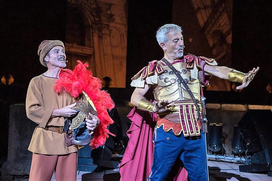 Todo se complica cuando los amantes son descubiertos por otro de los esclavos de Miles, que se dispone a ir a contárselo a su amo. Esto obligará a Palestrión a convencer al otro esclavo de que no ha visto lo que ha visto, recurriendo a un truco desternillante donde Palestrión nos deslumbra con su descaro y su ingenio. El astuto Palestrión no se conforma con eso y aprovechando la obsesión de Miles por el sexo, trama un brillante plan...