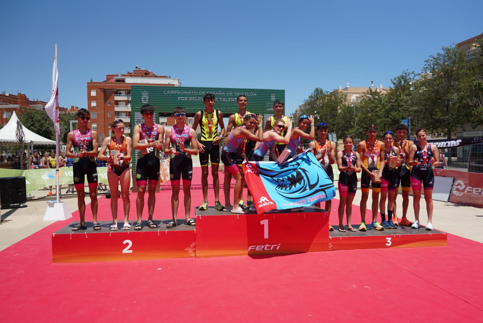 Náutico de Narón femenino y Natación Cedeira Muebles García masculino ganan el Campeonato de España de Triatlón Relevos de Talentos