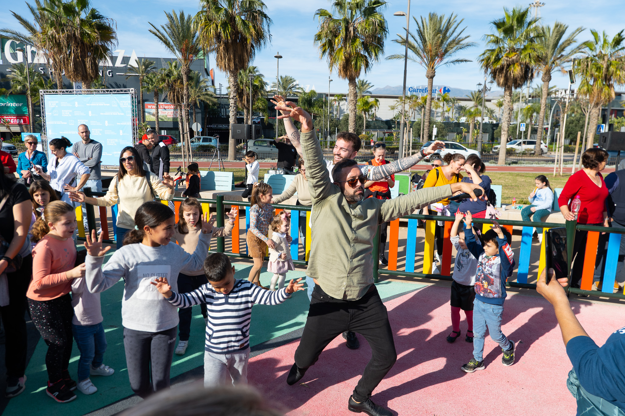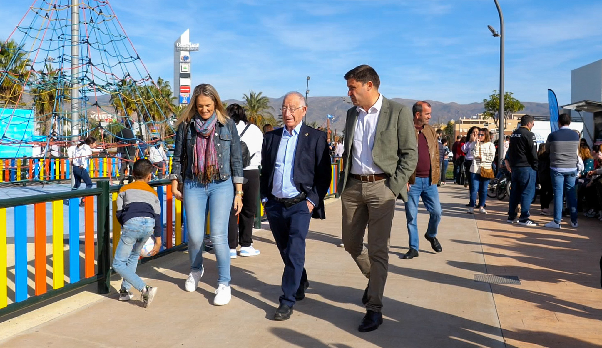 En este caso, la jornada se ha celebrado durante toda la mañana en el parque infantil situado frente al Centro Comercial Gran Plaza. El alcalde de Roquetas de Mar, Gabriel Amat, junto con el concejal de Empleo, Recursos Humanos y Fondos Europeos, José Juan Rodríguez, el concejal de Agenda Urbana, José Luis Llamas y la concejal de Salud y Medio Ambiente, Susi Ibáñez, han asistido a este evento familiar en el que han participado cientos de roqueteros. En concreto, en esta zona se ha llevado a cabo la remodelación de la conexión entre el Parque de Los Bajos y el Centro Comercial Gran Plaza, mediante la mejora del firme, plantación de árboles, zonas de juego infantiles y mobiliario urbano.