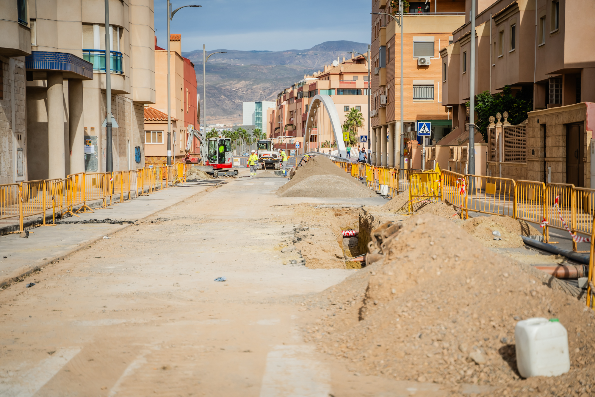 El Ayuntamiento de Roquetas de Mar renueva las redes de alcantarillado y agua en la calle Miguel Induráin y Joaquín Blume