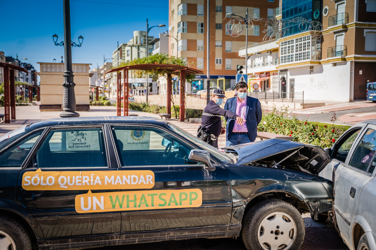 Gutiérrez, en su visita al escenario de Aguadulce, ha explicado que “hacemos mención a la peligrosidad que tiene el uso del móvil y el consumo de alcohol al volante, dos circunstancias que están generando muchos problemas en cuanto a la pacificación del tráfico y a la debida convivencia que deben tener todos los usuarios de la vía”.