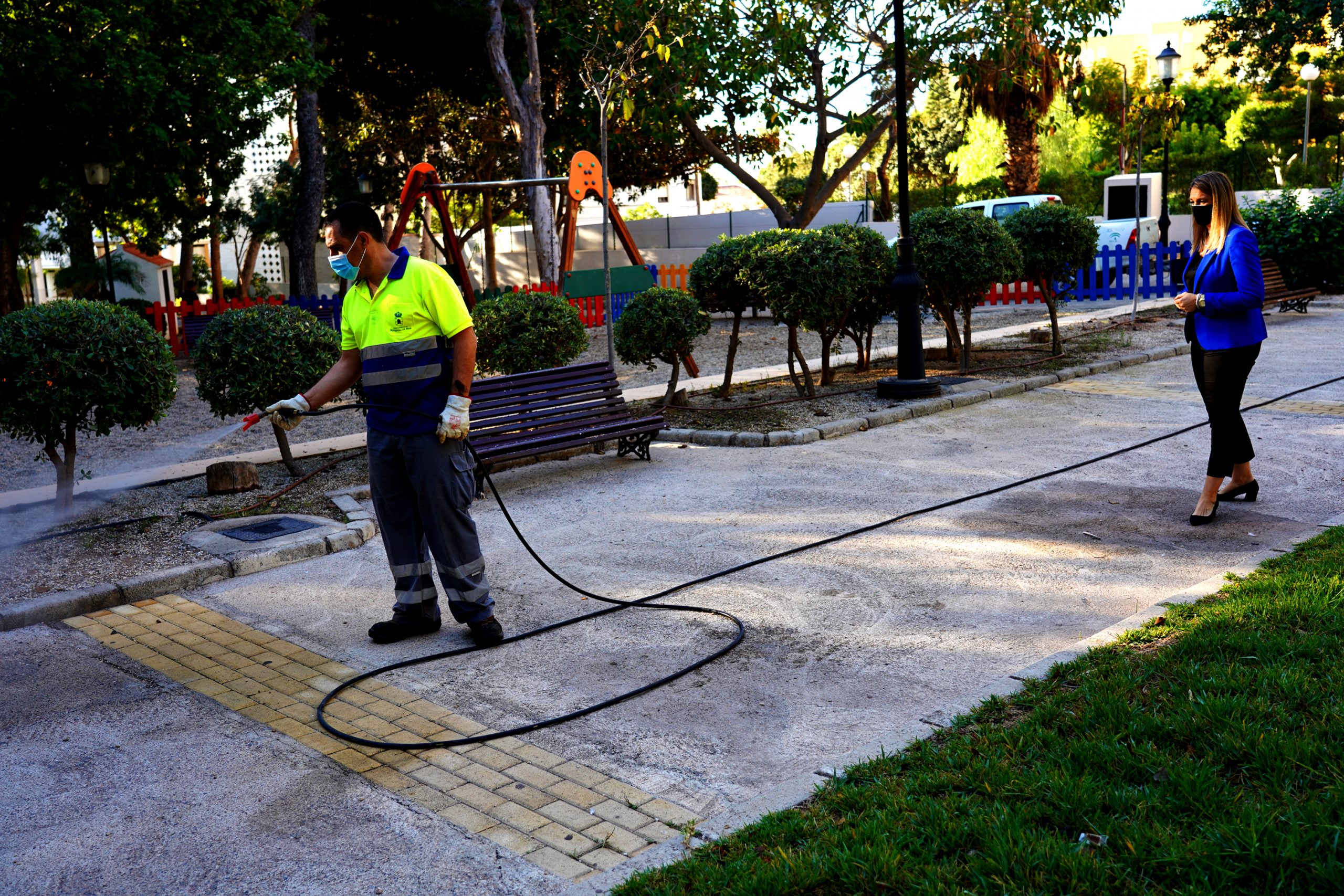 Para todo ello trabajan a diario varios equipos de desinfección, tanto en horario diurno como en franja nocturna, en espacios públicos del municipio.