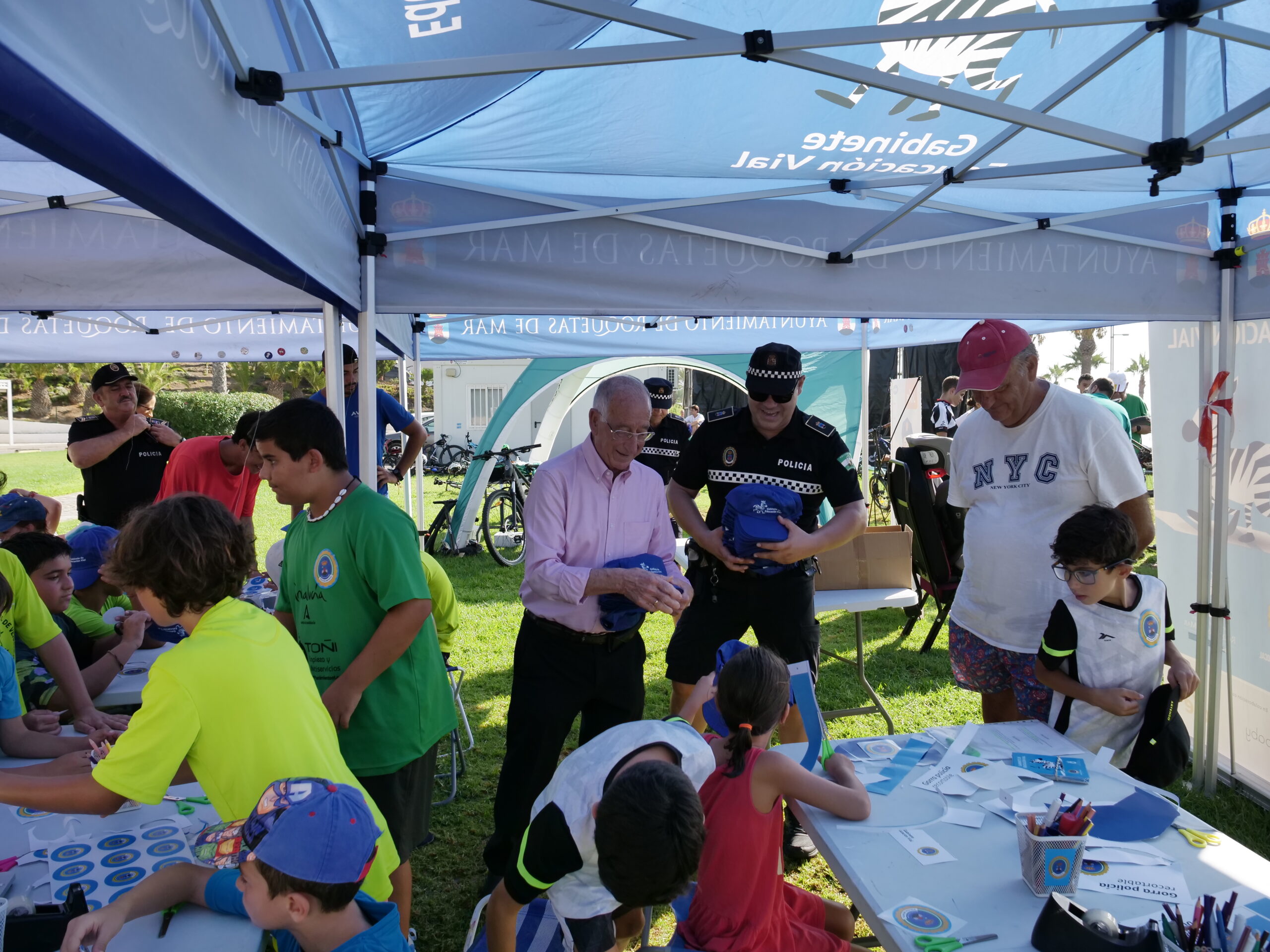En la carpa cuentan con gafas de simulación de alcoholemia, sillón simulador de vehículo, medidores para comprobar la altura de los menores para el uso el sistema de retención infantil, láminas para colorear, juego de la Oca de Educación Vial, taller de chapa, Gymkana para bicicletas, recortables y un importante punto informativo en materia de movilidad segura y responsable.
