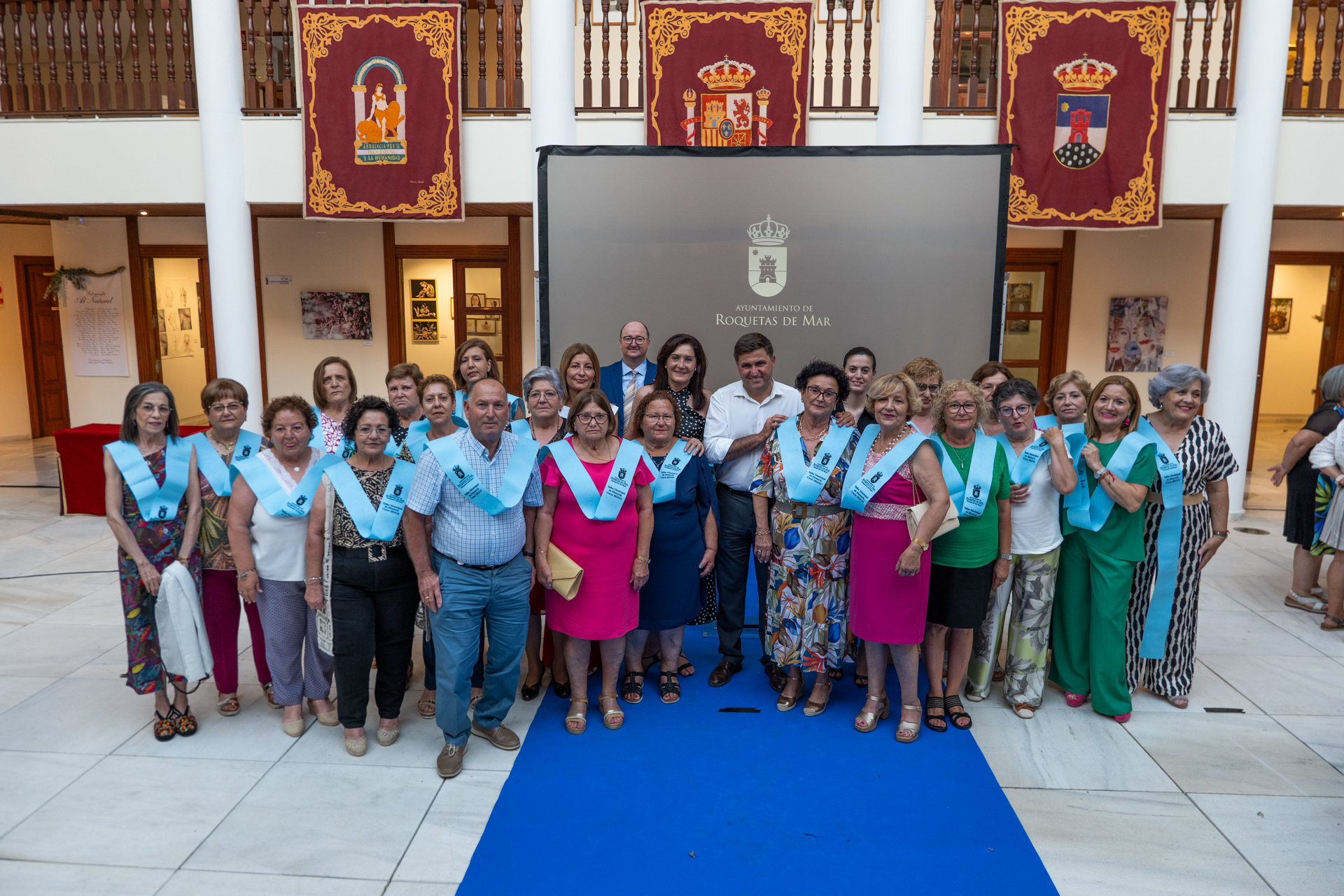 En total, durante este año se han impartido distintas actividades que abarcan distintas disciplinas como taller de memoria, pilates y yoga, baile flamenco y sevillanas, corte y confección y manualidades. El alcalde junto a varios concejales del equipo de Gobierno han hecho entrega a los mayores de las bandas que acredita la participación de los mayores en los diferentes talleres.
