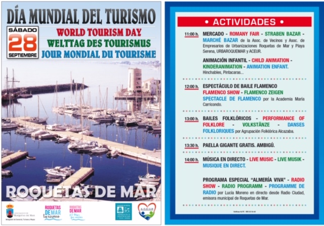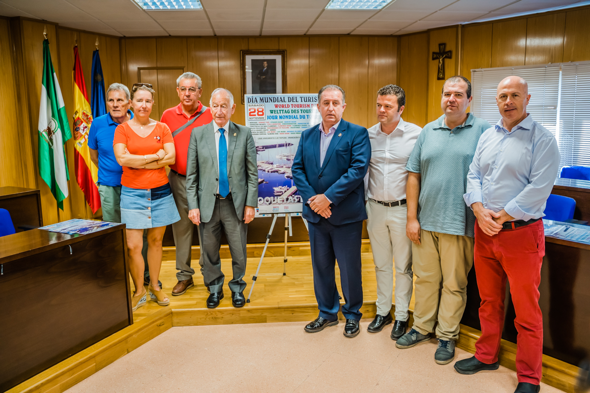 Gabriel Amat, alcalde de Roquetas de Mar, acompañado por Francisco Barrionuevo, concejal de Turismo y Playas, Melanie Homburg, presidenta de Urbaroquemar, Javier González, presidente de ACEUR, y José Ramos, de la Asociación de Empresarios de Playa, ha presentado el Día Mundial del Turismo, que llegará un año más a Roquetas de Mar con una fiesta de convivencia en la Urbanización el próximo sábado 28 de septiembre. Concretamente, será en los aparcamientos del Club Tropicana y contará con un gran número de actividades entre las que destacan un mercado, espectáculos de música en directo y una paella gigante para los asistentes.
