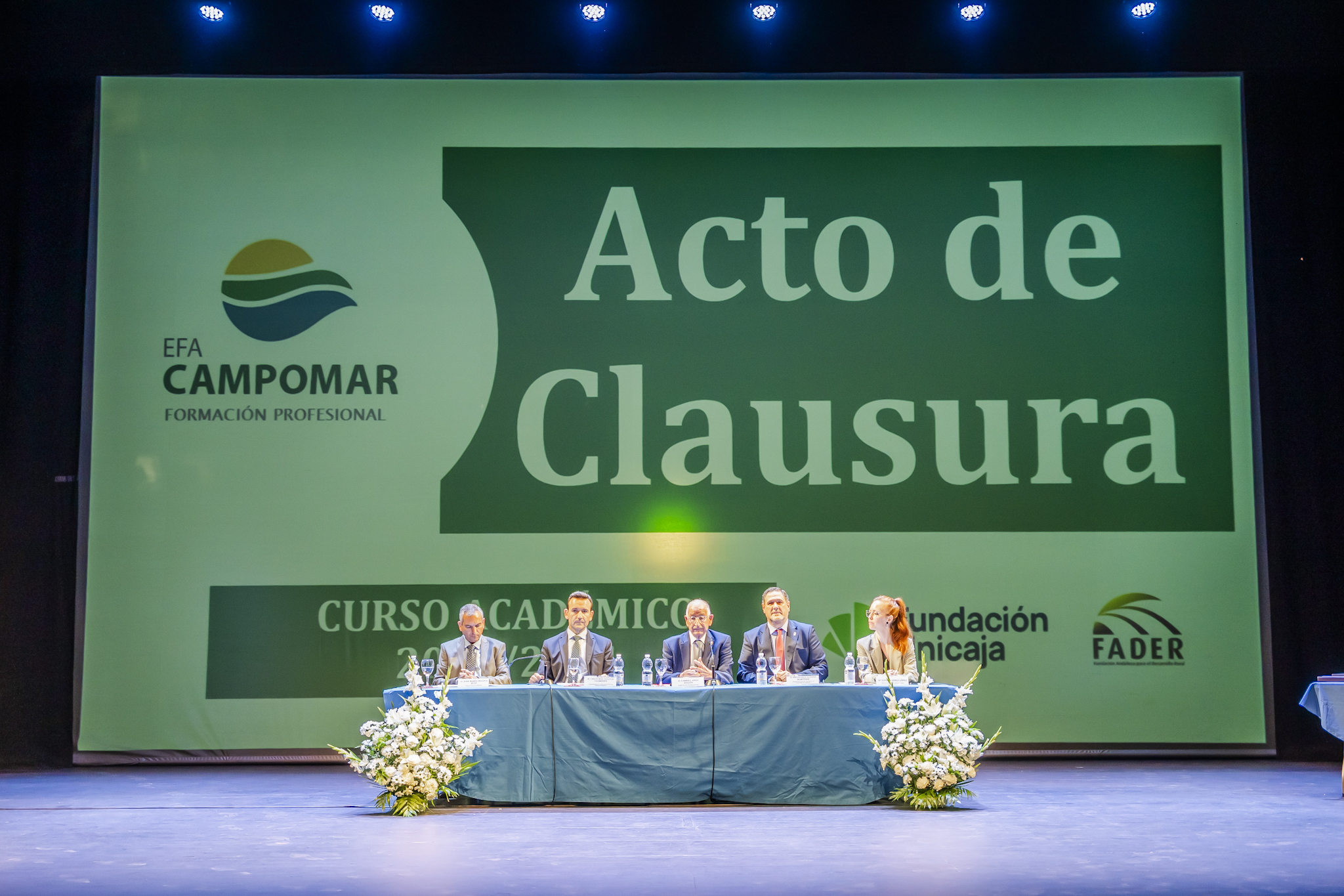 El Teatro Auditorio de Roquetas de Mar acogió ayer el acto de clausura e imposición de becas a los alumnos y alumnas que han finalizado su formación en la Escuela Familiar Agraria Campomar.