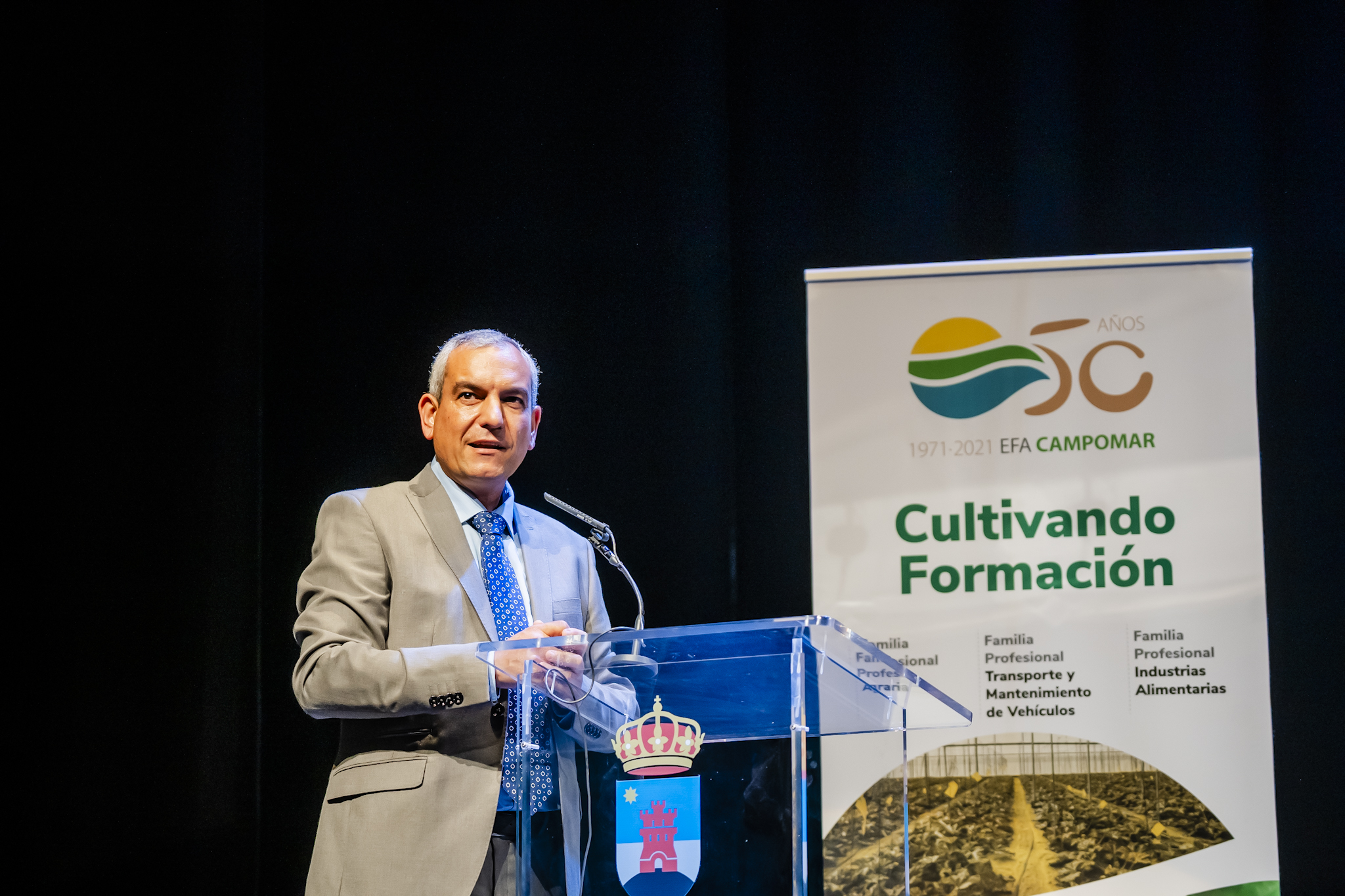 El alcalde de Roquetas de Mar, Gabriel Amat, destacó la labor formativa que Campomar lleva a cabo desde hace 50 años en el ámbito del sector agroalimentario e industria auxiliar. “Las nuevas generaciones deben de estar preparadas para afrontar los nuevos retos de la agricultura que pasan por la innovación, la incorporación de las nuevas tecnologías, un modelo sostenible, pero, al mismo tiempo, teniendo como pilar el modelo tradicional para seguir siendo referentes tanto a nivel nacional como internacional”, destaca Amat.