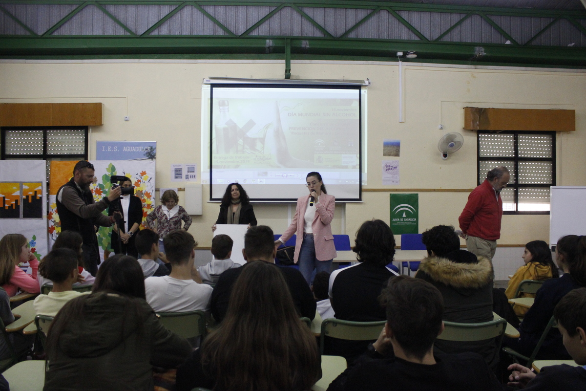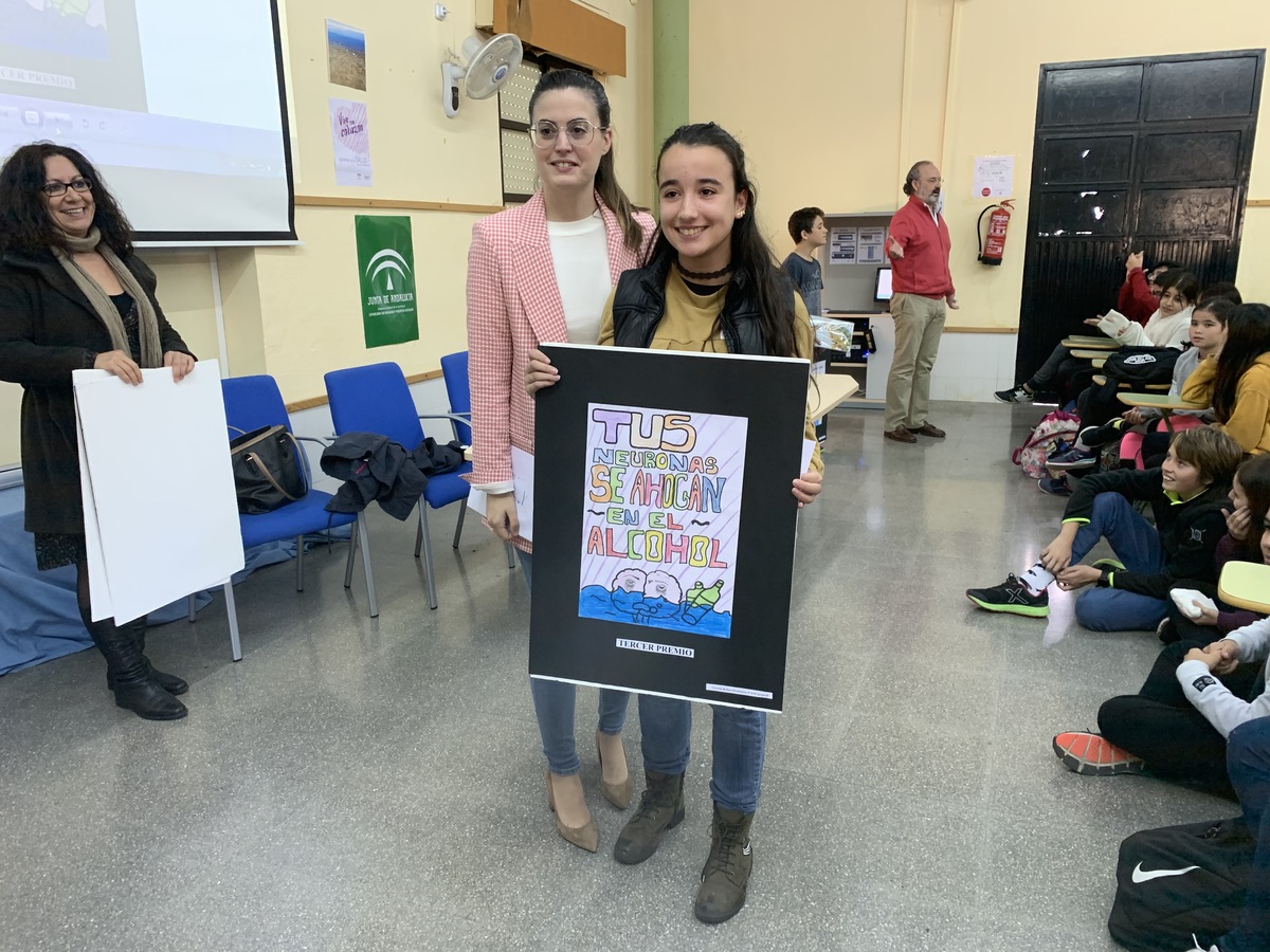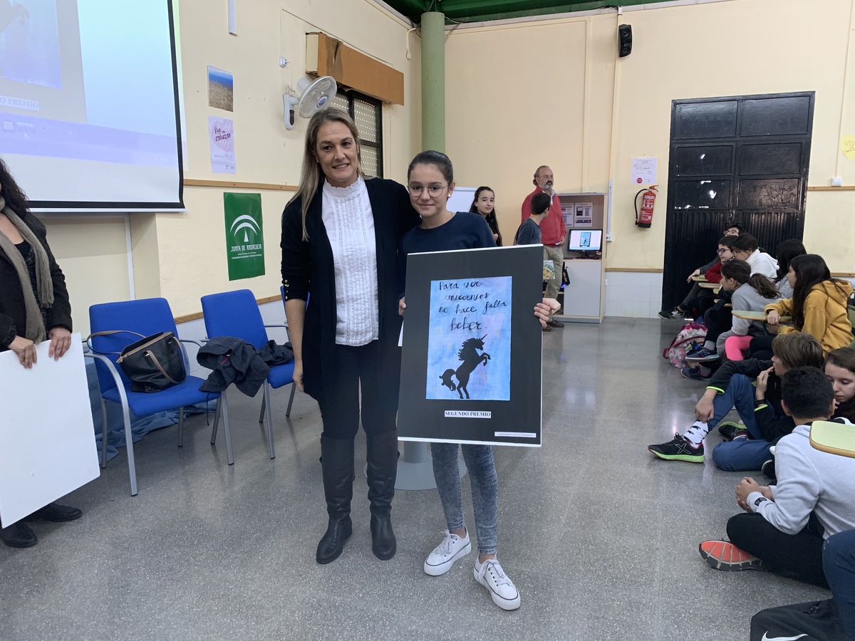 Con motivo del `Día Mundial sin Alcohol´, la concejal de Familia, Loles Moreno, y la concejal de Áseo Urbano, Parques y Jardines y Mercados, Susi Ibáñez, han entregado esta mañana a los alumnos de 2º de la ESO del IES de Aguadulce los premios del concurso que se realiza cada año con el objetivo de concienciar y sensibilizar a los jóvenes.