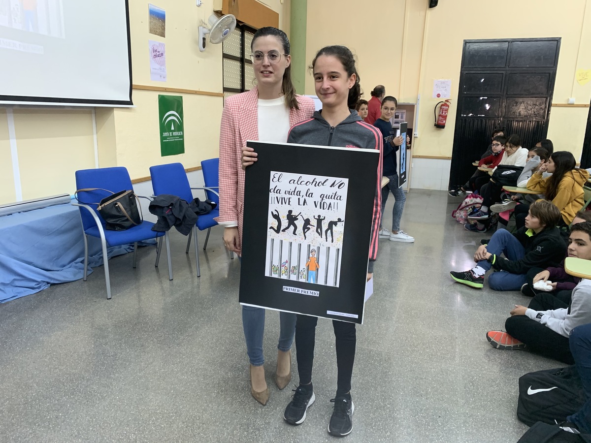 El ganador del premio accésit ha sido Alejandro Buchaca que, mediante la cuestión `¿Quieres seguir siendo un esclavo?´, ha reivindicado la problemática. El tercer premio lo ha conseguido Victoria Robles mediante el eslogan `Tus neuronas se ahogan en el alcohol´. Por su parte, el segundo premio lo ha ganado Nazaret Rodríguez con `Para ver unicornios no hace falta beber´ y el primer premio ha sido para Lucía Becerra con el lema `El Alcohol no da vida, te la quita. ¡Vive la vida!”