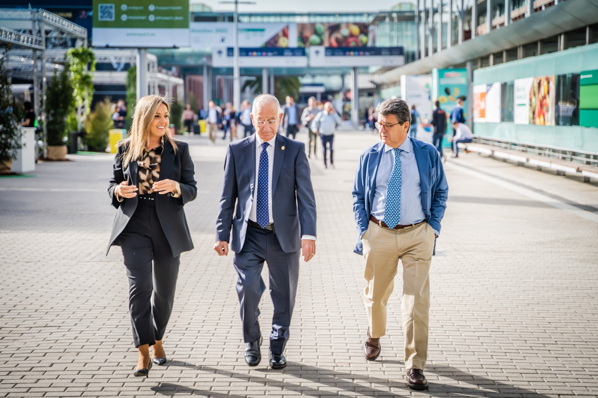El alcalde de Roquetas de Mar, Gabriel Amat, acompañado por la concejal de Presidencia, Rocío Sánchez, y el diputado nacional Juanjo Matarí, han asistido a FruitAttraction, la feria internacional de frutas y hortalizas que se celebra en Madrid.
