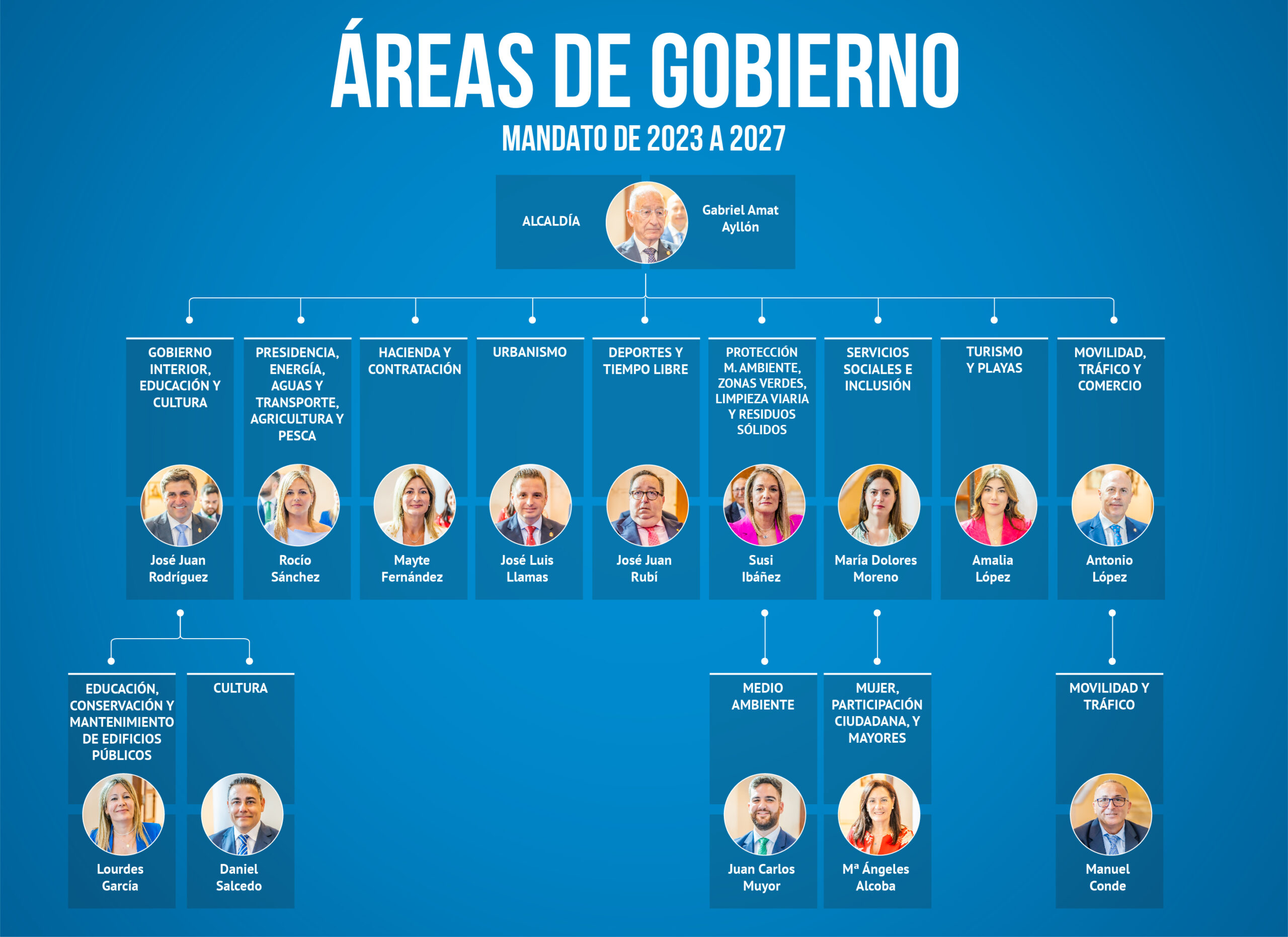 De esta forma, el Gobierno Local estará conformado por nueve delegaciones genéricas que abarcan tres ámbitos de gestión que se unifican en torno a distintas funciones, la administración, la planificación y los servicios a los ciudadanos.