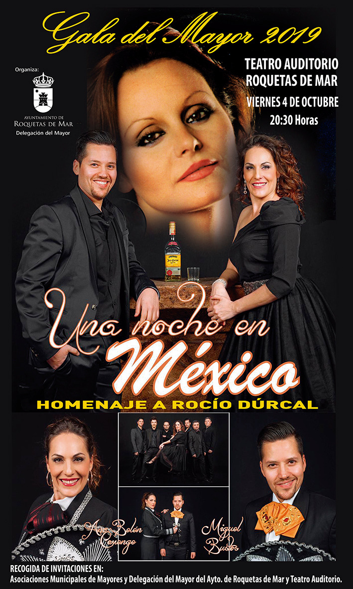 La Gala del Mayor se celebrará en el Teatro Auditorio el próximo viernes 4 de octubre con el título ‘una noche en México’, una gran actuación donde se homenajeará a Rocío Dúrcal y su música. Unos días más tarde, exactamente el 25 de octubre se realizará el viaje a Cartagena y Jumilla.