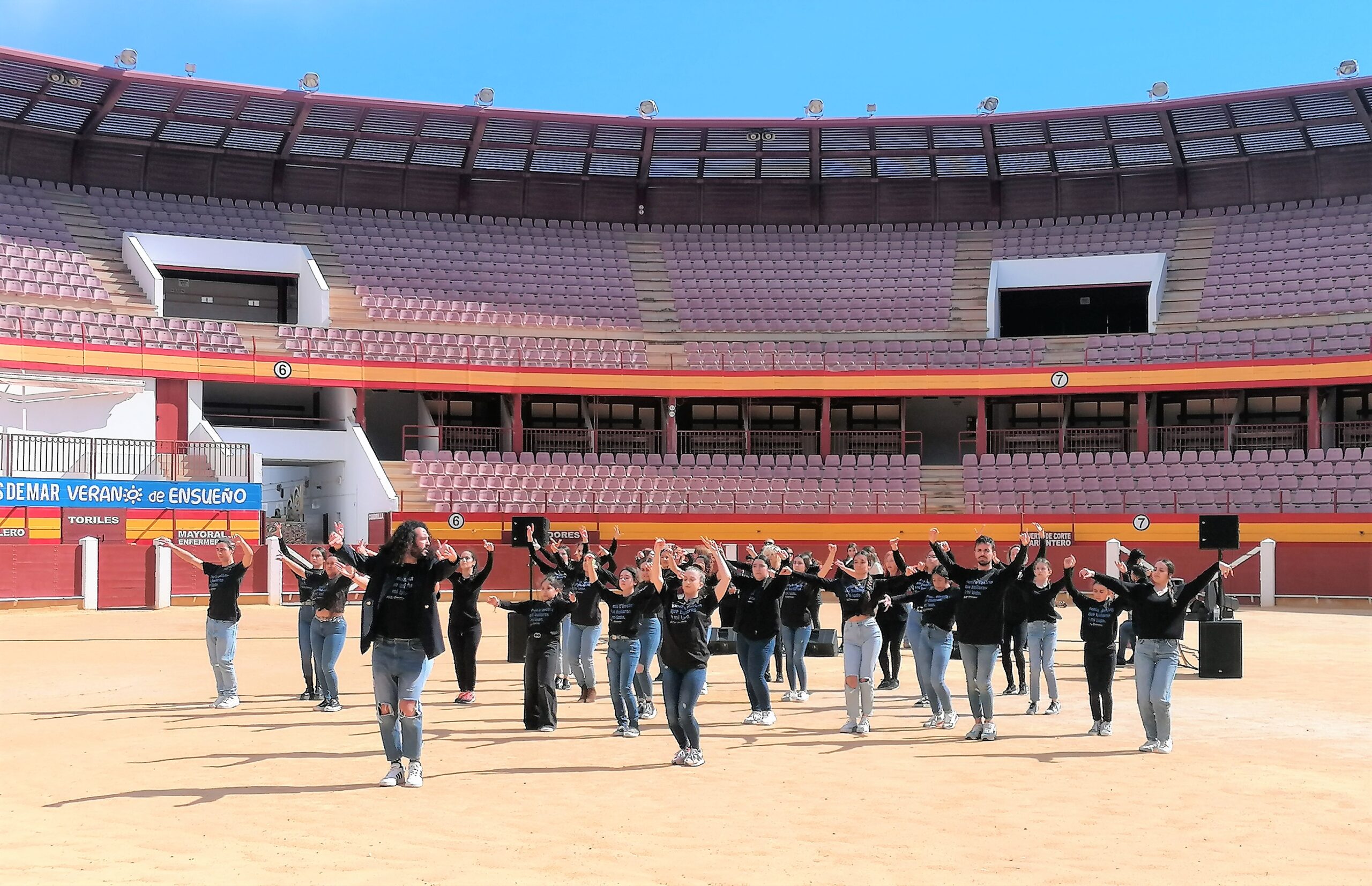Esta mañana se han celebrado dos talleres de cante, guitarra y baile y luego una flashmob en la Plaza de toros