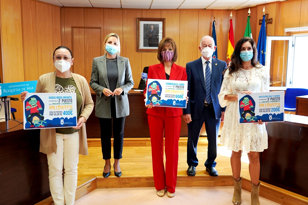 El alcalde, Gabriel Amat, y la concejal de Presidencia Agricultura y Pesca, Rocío Sánchez, han entregado esta mañana los premios del concurso de escaparates de Halloween, un certamen que tiene como objetivo fomentar la participación del tejido comercial de la ciudad y promocionar las compras en los establecimientos tradicionales de barrio.