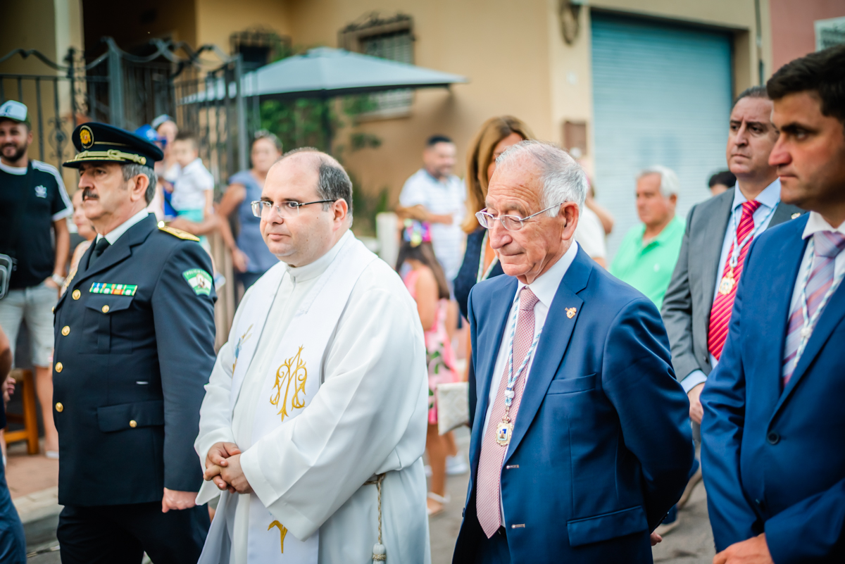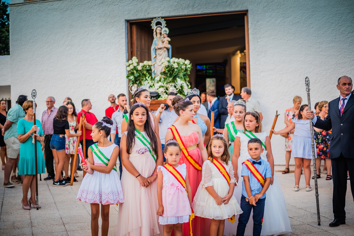 Tal y como estaba previsto, a las 21 horas daba comienzo la procesión, a la que se sumaron un gran número de vecinos que recorrieron, junto a la figura de la Virgen María Madre, las calles de El Solanillo. Durante el trayecto, fueron varias las paradas que tuvieron lugar. Unas para disfrutar de fuegos artificiales como ruedas o tracas de cohetes, otras para rendir homenaje a figuras emblemáticas del municipio como cuando el paso se detuvo frente al parque dedicado a Josefa Sánchez Abad por su labor desinteresada con el barrio, uno de los momentos emotivos de la procesión.