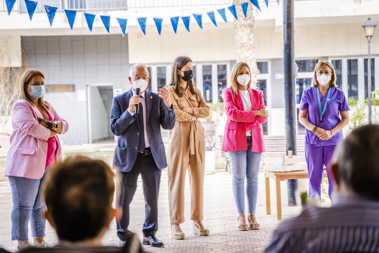El alcalde en funciones de Roquetas de Mar, Gabriel Amat, acompañado por las concejalas en funciones, Rocío Sánchez y Loles Moreno, han asistido hoy a uno de los actos centrales de este aniversario que se ha celebrado en el patio de la residencia.
