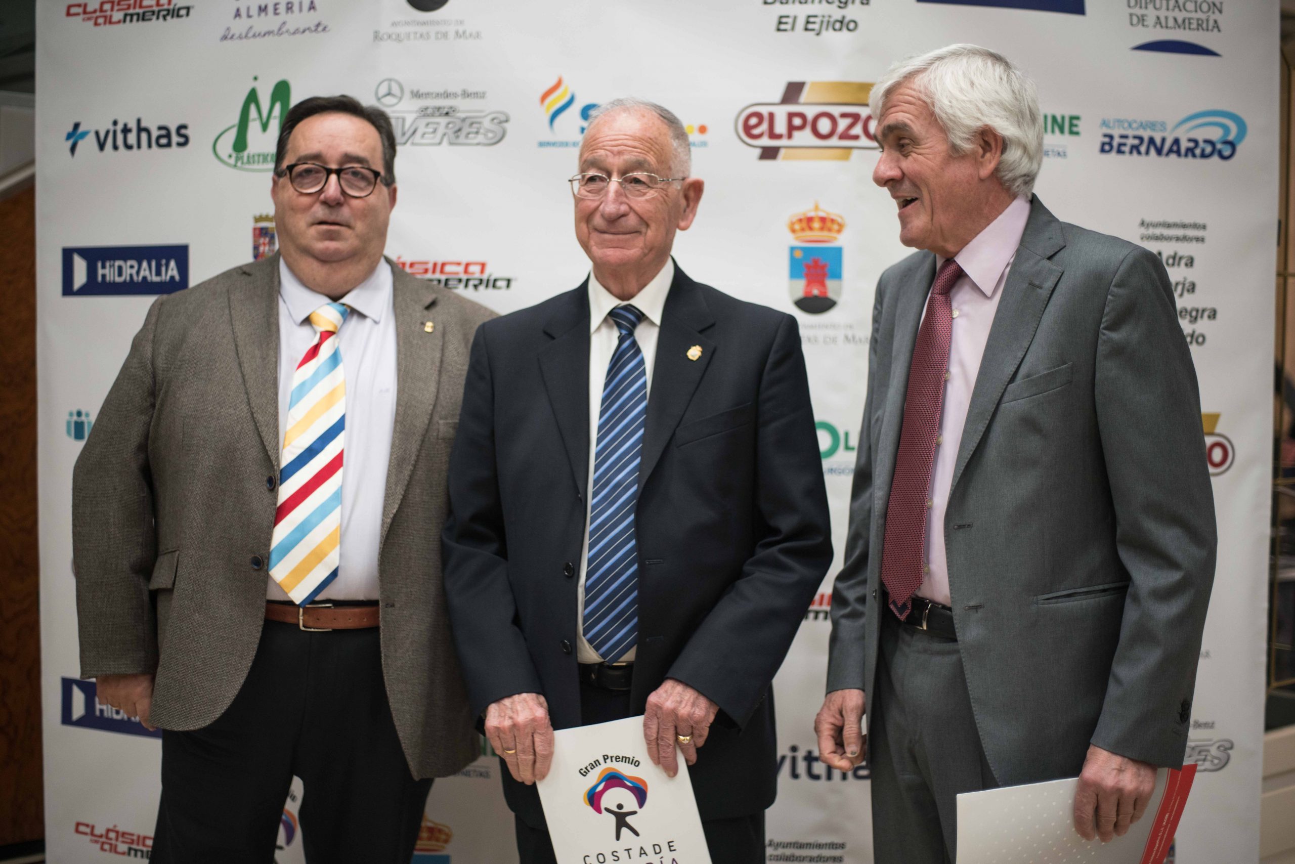 El organizador de la carrera, José Manuel Muñoz, ha entregado a Gabriel Amat una placa conmemorativa como muestra de agradecimiento al compromiso que ha mostrado con esta competición, tanto como alcalde de Roquetas de Mar y en su anterior etapa como presidente de la Diputación.