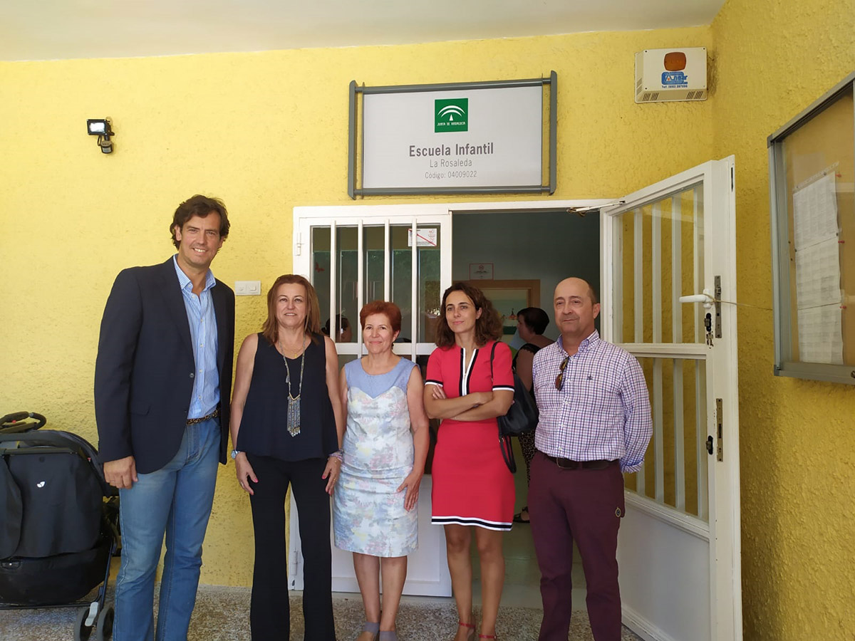 La delegada territorial de Educación, Deporte, Igualdad, Políticas Sociales y Conciliación, María del Carmen Castillo Mena, ha inaugurado el curso escolar de la Escuela Infantil La Rosaleda de Roquetas de Mar, acompañada por la directora del centro María Dolores Reina Cárdenas y el concejal de Educación, Cultural y Juventud de Roquetas de Mar, Juan José Salvador, donde han podido conocer de primera mano la puesta en marcha de este nuevo curso, que en este centro atiende a 124 alumnos y alumnas repartidos en 11 unidades de 0, 1 y 2 años.